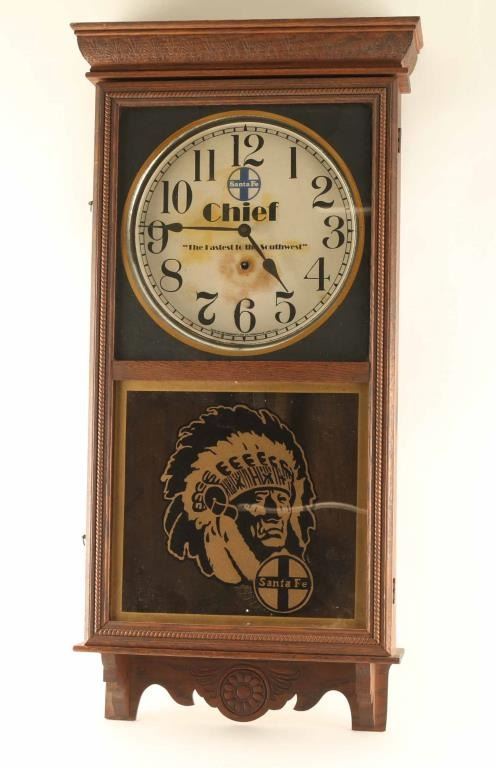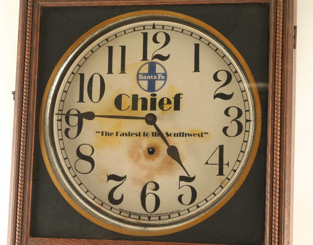 Santa Fe Railroad, shows Chief logo fastest in the southwest. In good working condition. Out of an old railroad station on the line by the Winslow, Arizona area.
