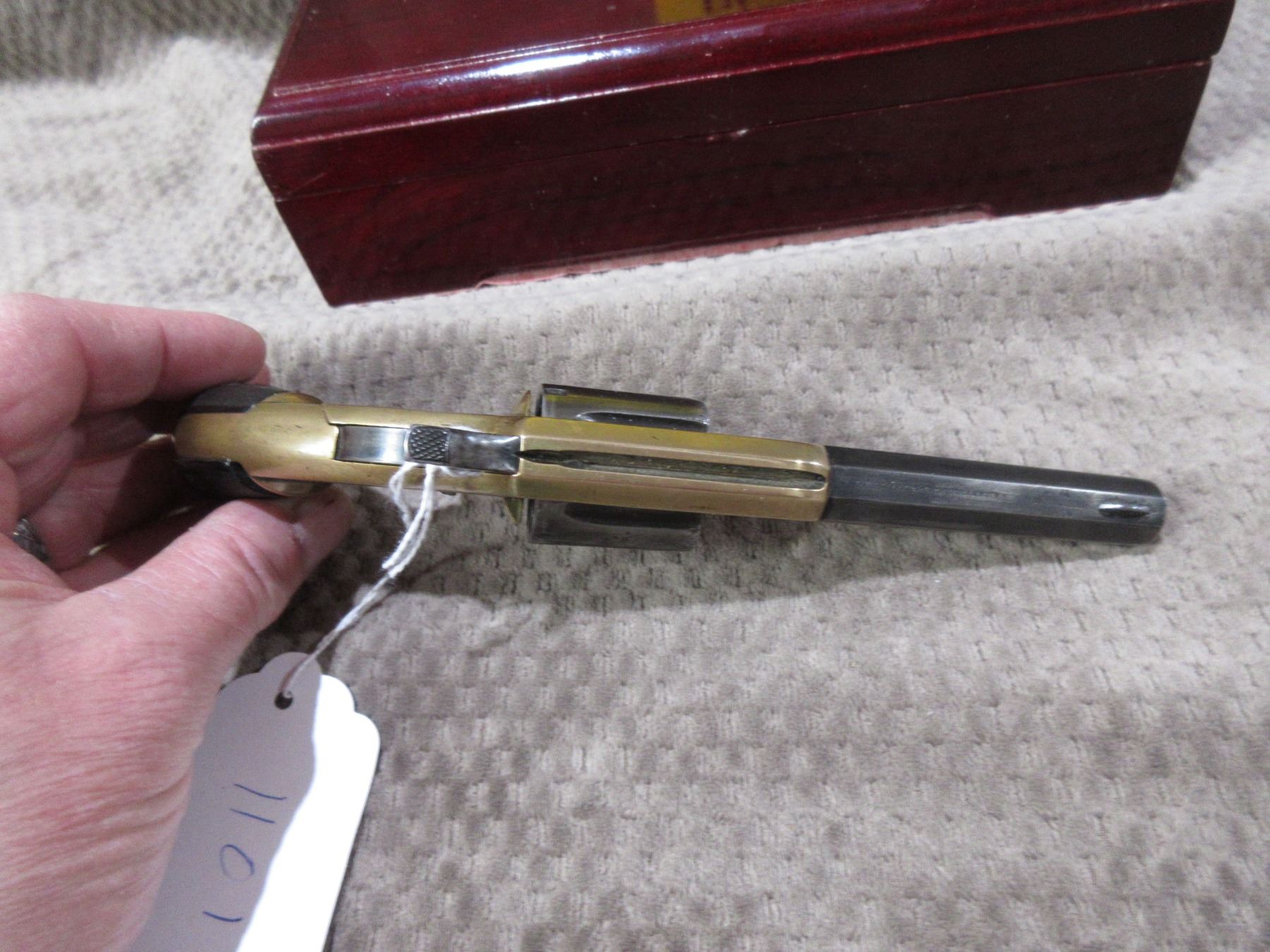 Antique - Whitneyville Armory No. 2 in 32 RF - This single-action spur trigger 6 shot revolver appears to be in good working order. Barrel is 3 1/2", rifling is good to very good with minor pitting, bluing is fair to good, brass is good for age with marks, has fixed sights, grips are good but appear incorrect (our information says should have rosewood grips), comes with non-original wood box, Ser # 658
