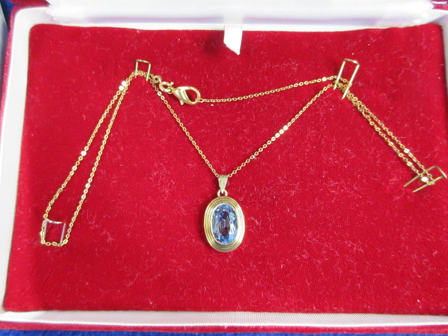 Aquamarine Necklace - 8 Karat Gold Pendant, 14 Karat 20" Chain - In Display Box