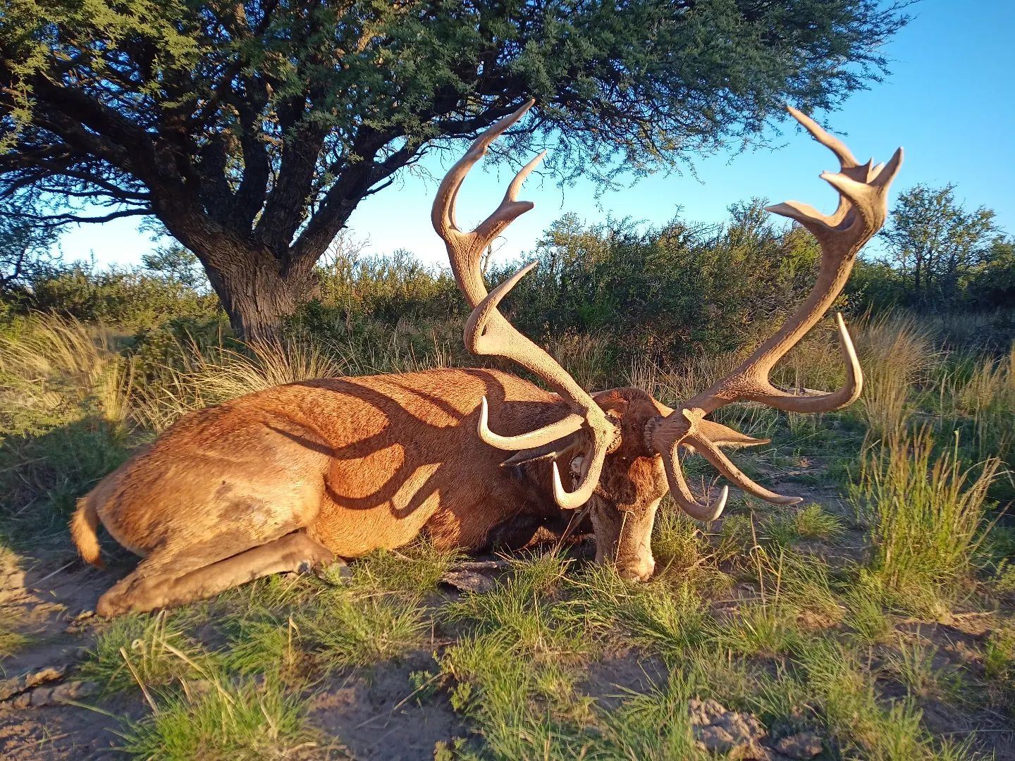 Gonzalo offers hunting for all the species Argentina is known for including Red Stag, Water Buffalo, Axis Deer, Fallow Deer, Blackbuck, Mouflon, Multi-horned Sheep, Wild Goats, and Wild Boars. This hunt is for two hunters in the La Pampa Province and includes trophy fees for best available Red Stag or Axis Buck for one hunter on a several thousand-acre, low-fence property. Donated trophy may be upgraded to a Water Buffalo trophy for $2,000 or to a high-fence premium stag according to price list. The hunt is typically by spot and stalk method, but elevated blinds are also available.