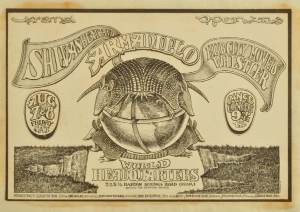 Featuring Shiva's Headband. Austin, TX. August 7-8, 1970. Artist: Jim Franklin. Linen backed. 7" x 10-3/4"