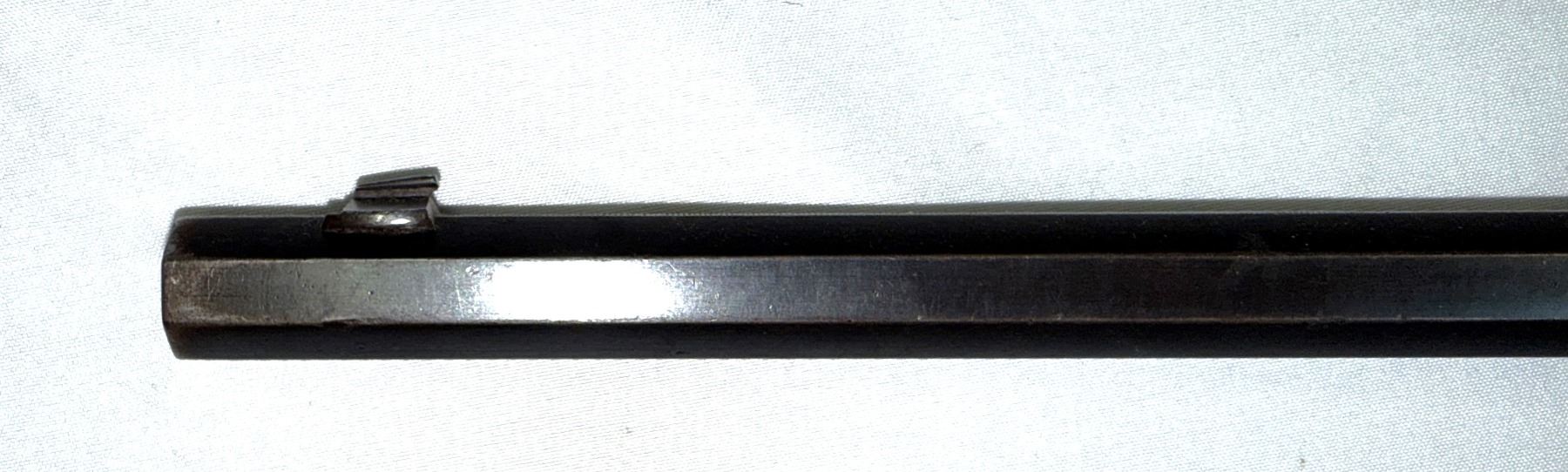 Octagonal barrel with flat top dovetailed blade front sight, 3 leaf rear sight, 2 folding and
