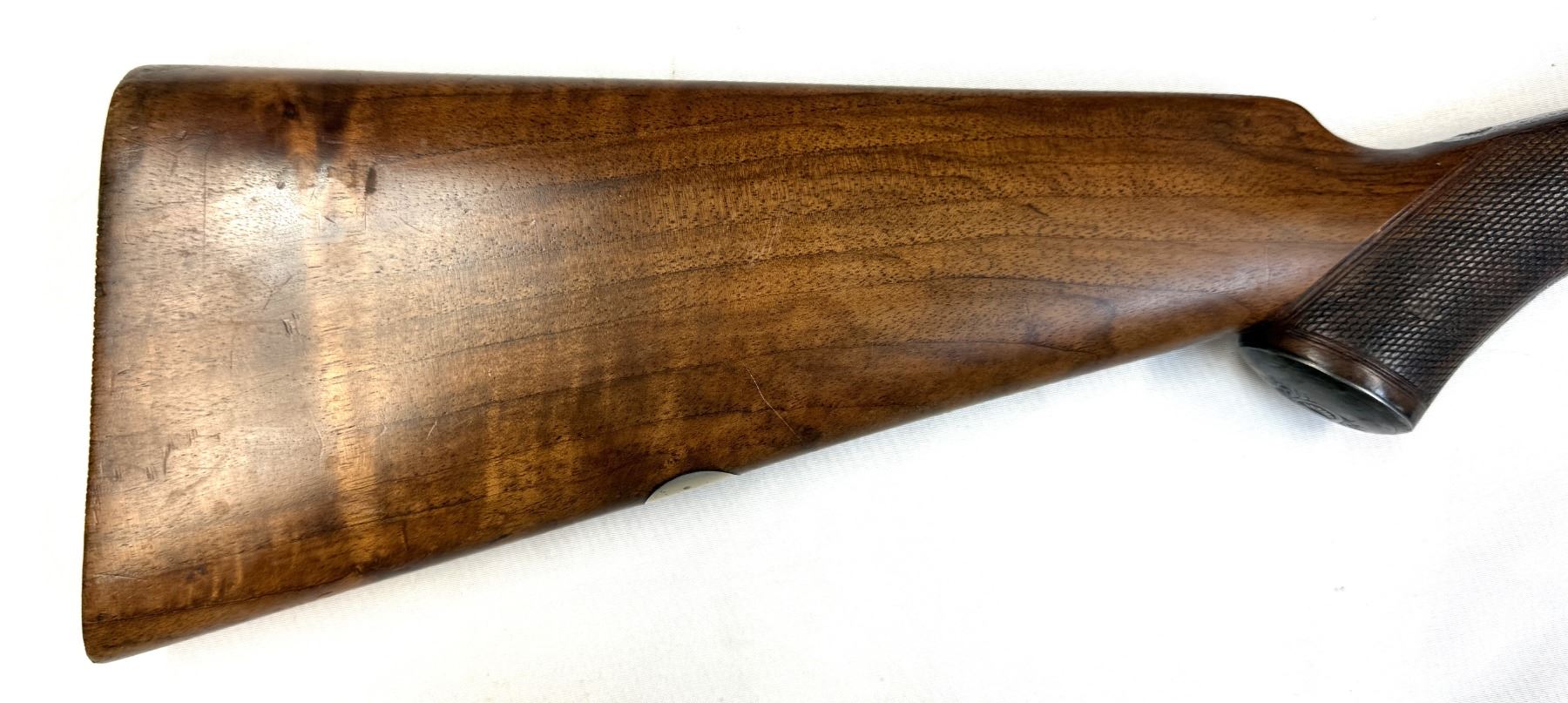 Rear Stock with checkered pistol grip. No buttplate as wood has grooves cut into it