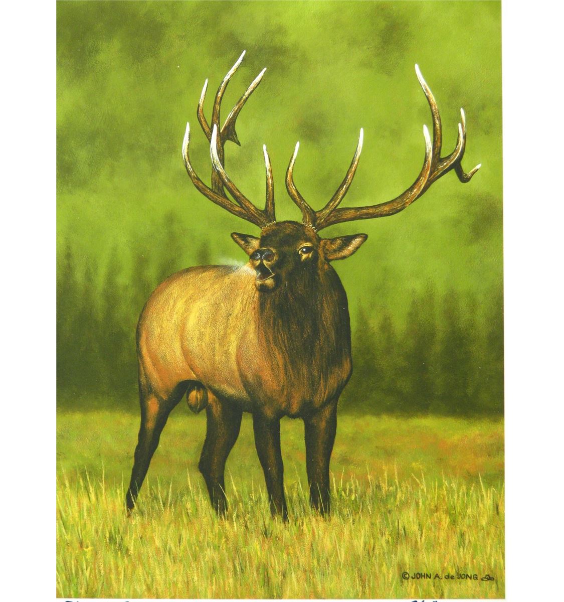 A fall scene with a bull elk bugling showing his trophy rack in acrylic, 12 3/4 x 10