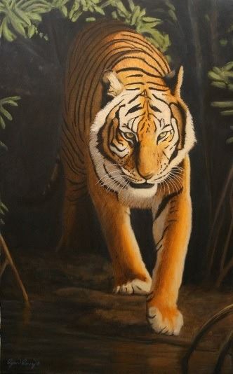 "Walking into the Light" is an original oil on canvas. This 30” X 40” tiger painting is unframed, and the edges are painted black. Please stop by Ryan’s booth tonight and say “Hello,” to this nationally recognized and incredibly talented artist!