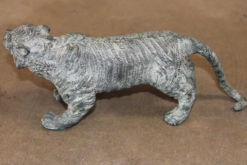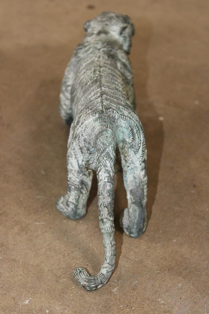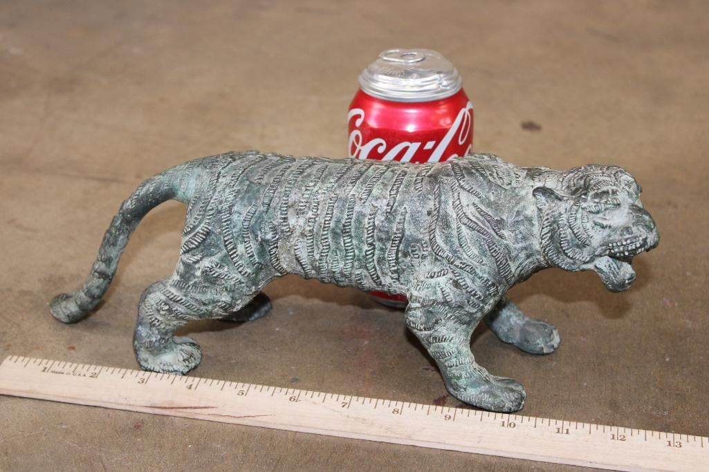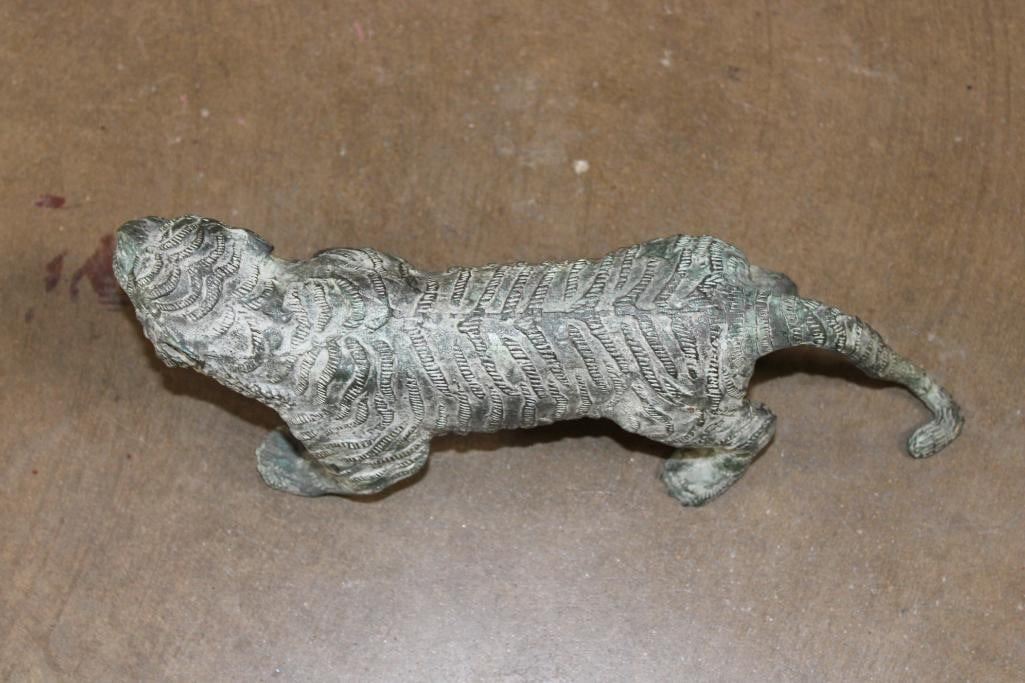 Asian Style TIGER Bronze Sculpture. It measures 12.75" Long x 3.25" Wide x 4.75" Tall. The Total Weight is 4 lbs 5 oz. COLLECTIBLE BRONZE SCULPTURES AND STATUES