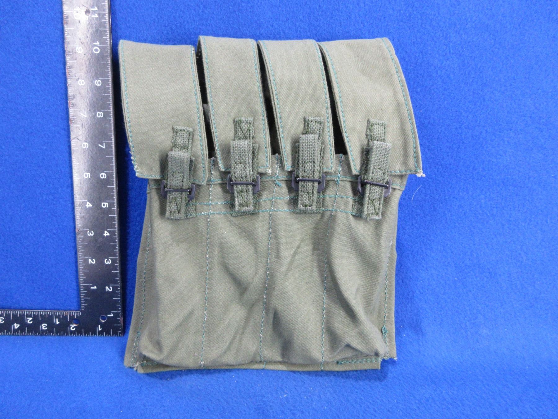 Australian Army Vietnam Mag Pouch - Original Jungle green dated 1972 Vietnam period 9mm Sterling SMG heavy duty canvas mag pouch. Also fits the curved Australian 9mm F1 mag which is the same design. Excellent, unissued condition.