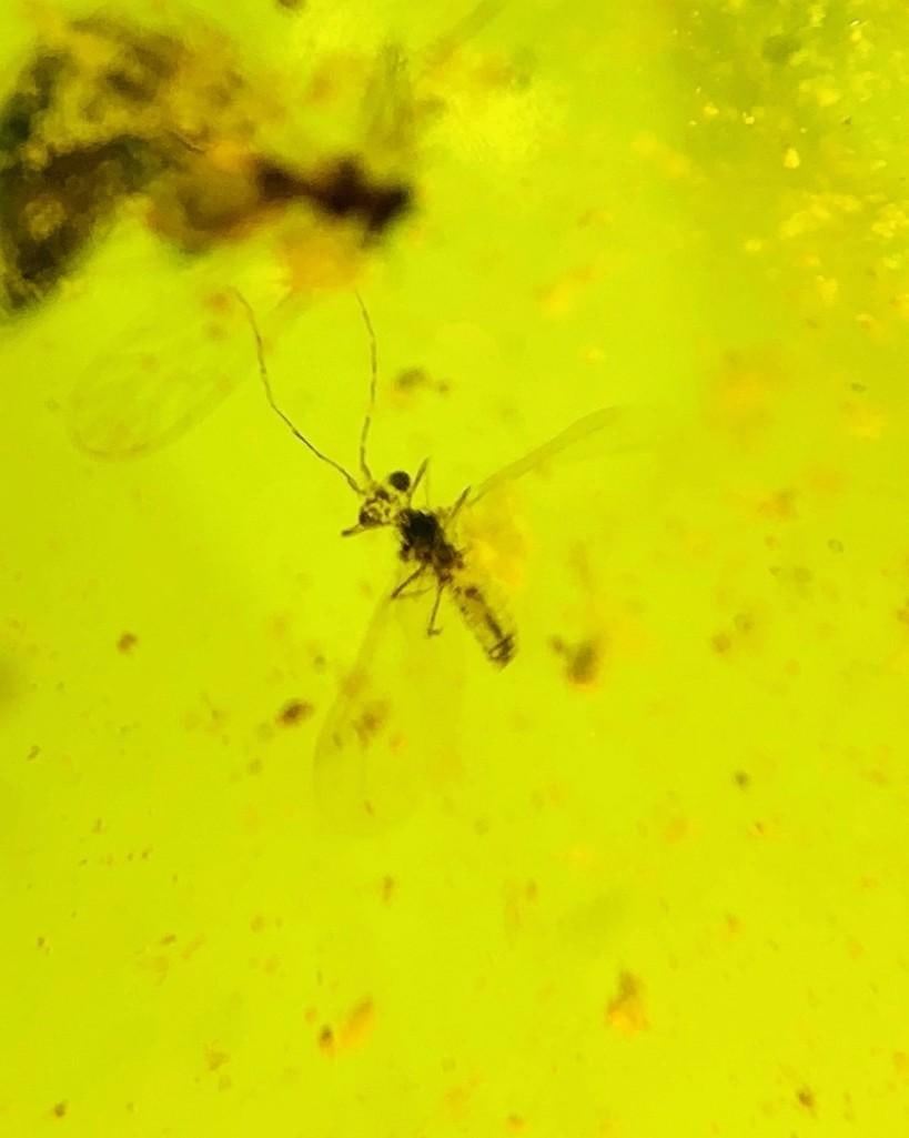 Authentic Myanmar AMBER Fossil Plant Resin with a Horsefly Inclusion. It measures approximately 1.2" Long x 0.5" Wide x 5/16" Thick and the Total Weight is 2.06 g or 10.3 ct. This Specimen has fine color and clarity, it has been UV Tested and is Reactive. It comes in a 2.75" x 2.75" Display Case. Burmese Amber from Myanmar is about 100 million years old and come from the Cretaceous period. Burmese amber is witness of rapid origination and radation of moder insect groups. ROCKS MINERALS FOSSILS