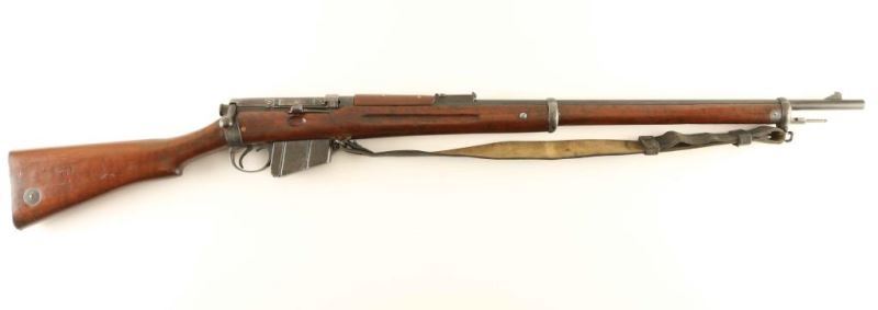 SN: 18840 Rare 1891 vintage British military magazine fed bolt action service rifle chambered in .303 British, that was later downgraded to a Drill Purpose rifle. Features a blued finish, 30.2" barrel, ramped blade front sight, latter style rear sight graduated to 1800 yards, volley sights, metal forend cap with bayonet lug, piling swivel & improper cleaning rod, serrated trigger, detachable 8 round magazine linked to the bottom metal, magazine cut-off on the right side of the receiver, two-piece dust cover on the bolt, black leather sling, smooth wood hand guard, full length forend with finger grooves, and straight grip shoulder stock with metal disc and trapdoor metal buttplate. The right side of the butt socket is marked '[crown]/VR/B.S.A. & M. Co./1891./1*,' the stock is marked "EY" and the barrel & receiver are marked "DP" over the chamber. Serial numbers match on the receiver, barrel and rear sight. The majority of the metal surfaces bear and aged brown patina with approximately 15% bright bluing retained in the protected areas. Action is sound, bore is good, and the refinished wood stocks are near fine with a chip in the handguard. Condition is NRA Very Good ***Antique Firearm*** From The John F Sukey Collection