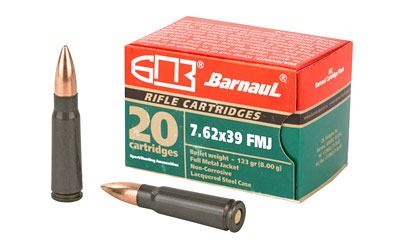 Barnaul Ammunition, 762X39, 123 Grain, Full Metal Jacket, 20 Round Box, Steel Lacquered Case