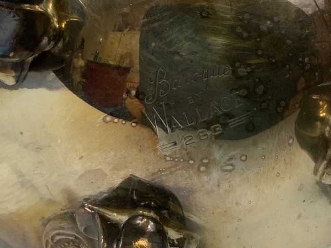 BAROQUE BY WALLACE VINTAGE SILVER 3 PIECE TEA SET - SILVERPLATE . GREAT CONDITION BEAUTIFUL SET .