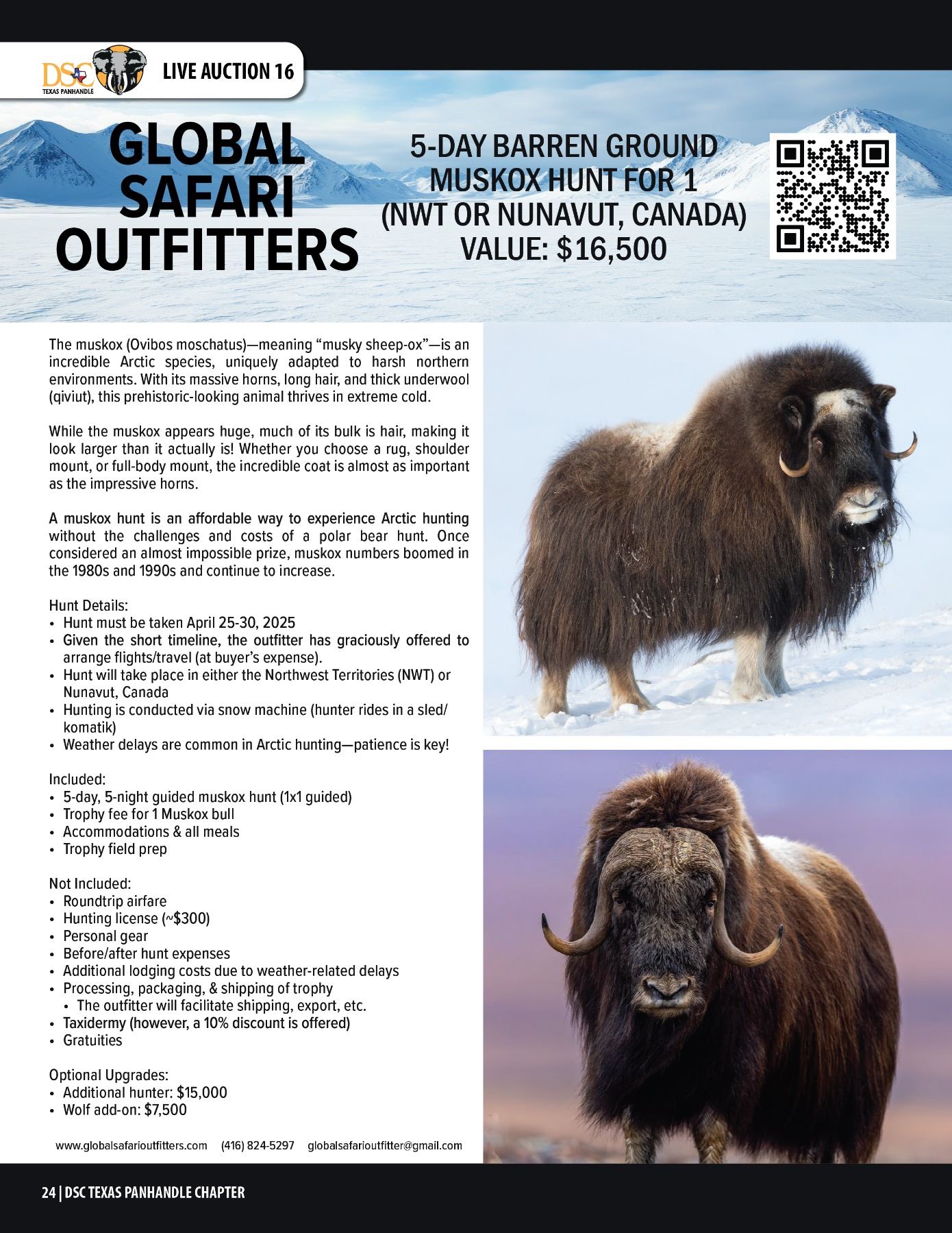 • Given the short timeline, the outfitter has graciously offered to arrange flights/travel (at buyer’s expense).