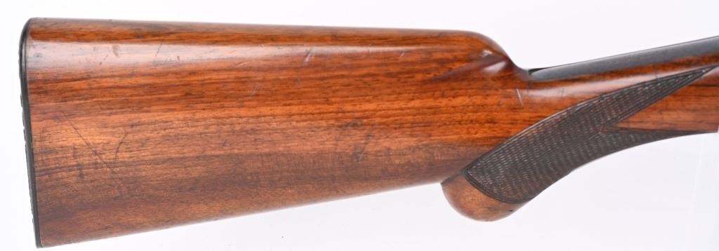 SERIAL 9G67684. BARREL 28". GAUGE 12. CHAMBER 2 3/4". CHOKE ** MOD. LOP 14.5". MADE IN 1959. Features matted barrel, bead on base front sight, blue finish, round knob checkered walnut stocks, FN gutta percha butt plate and gold trigger. Condition. 90% blue on barrel with some thinning and a few freckles. Frame retains about 90% blue with some light freckles, some high edge wear and couple spots of thinning. Stock is excellent with some impressions. Fore-arm has a small chip and crack at frame base. C&R