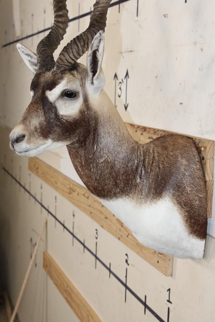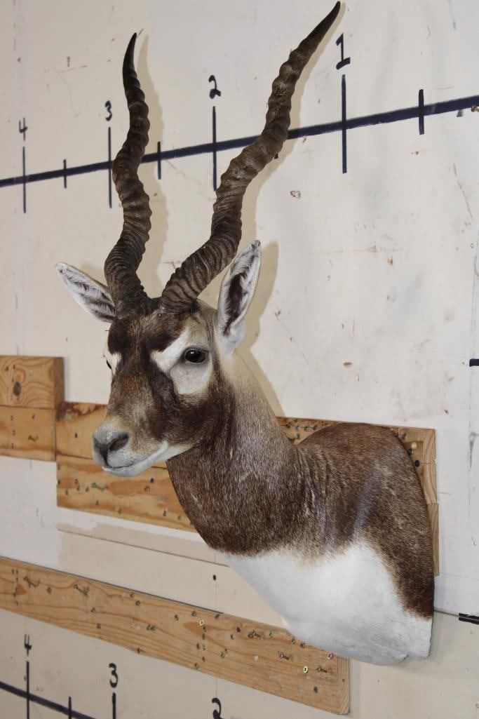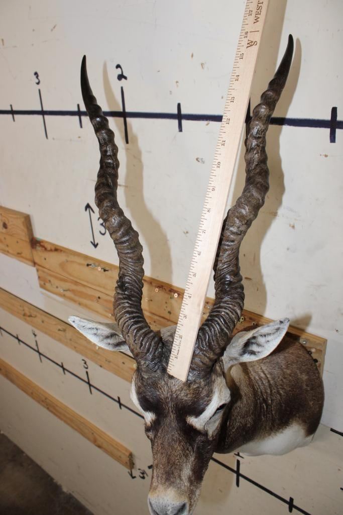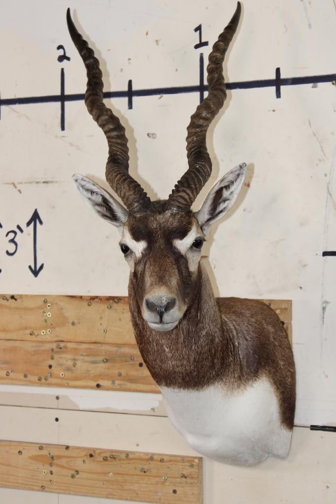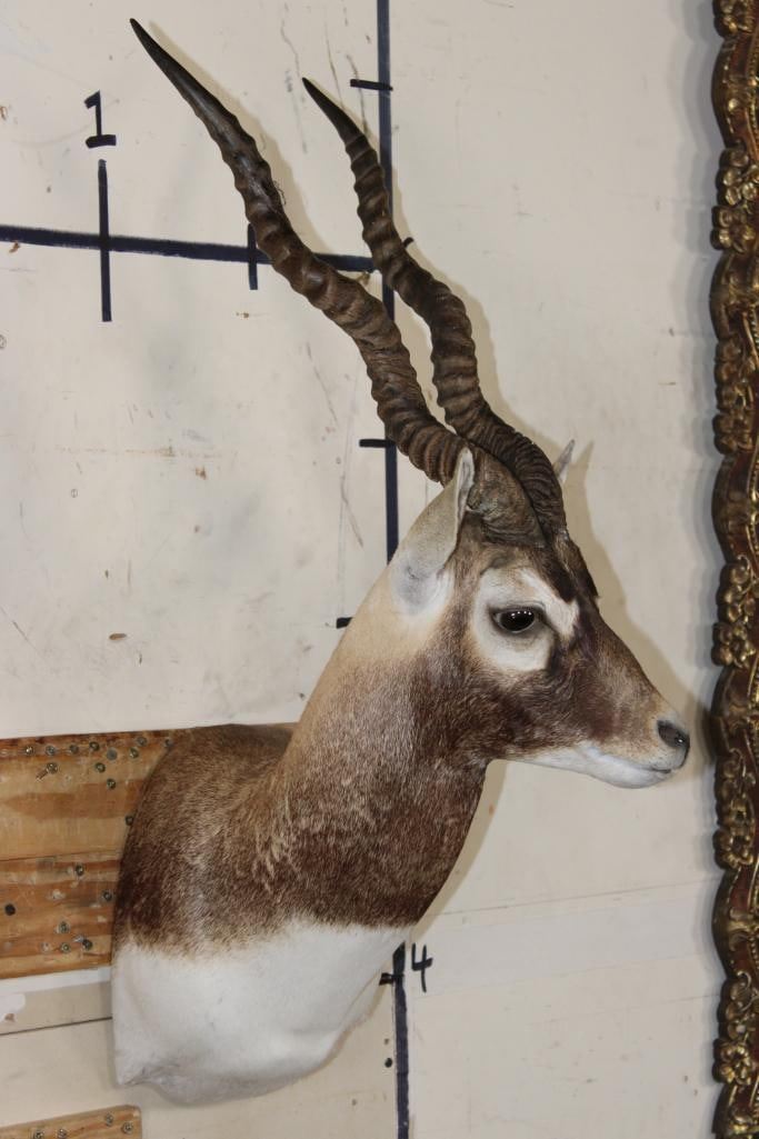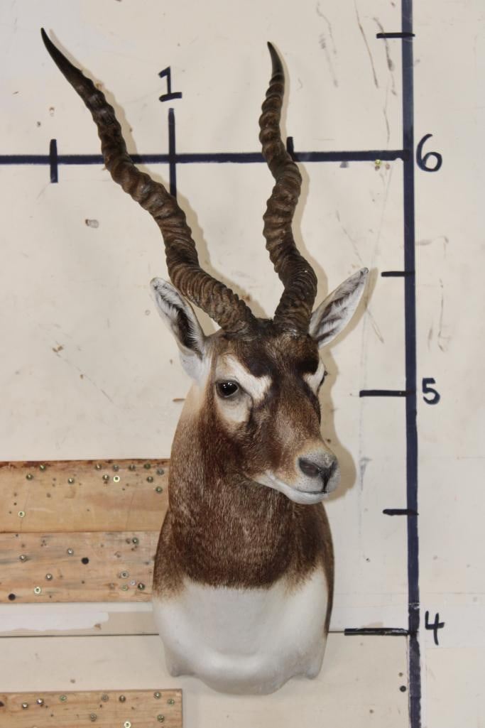 Very Nice, Clean, and Newer BLACKBUCK Shoulder Mount in Very Good Condition. The Left Horn measures 23 1/8" around the spiral ridge and the Right Horn measures 23 5/8" around the spiral ridge. TAXIDERMY