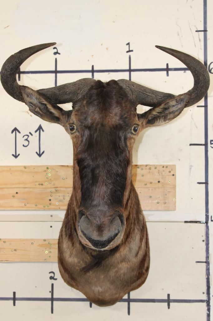 Nice BLUE WILDEBEEST Shoulder Mount. It has a 26.75" Spread and is in Good Condition. TAXIDERMY