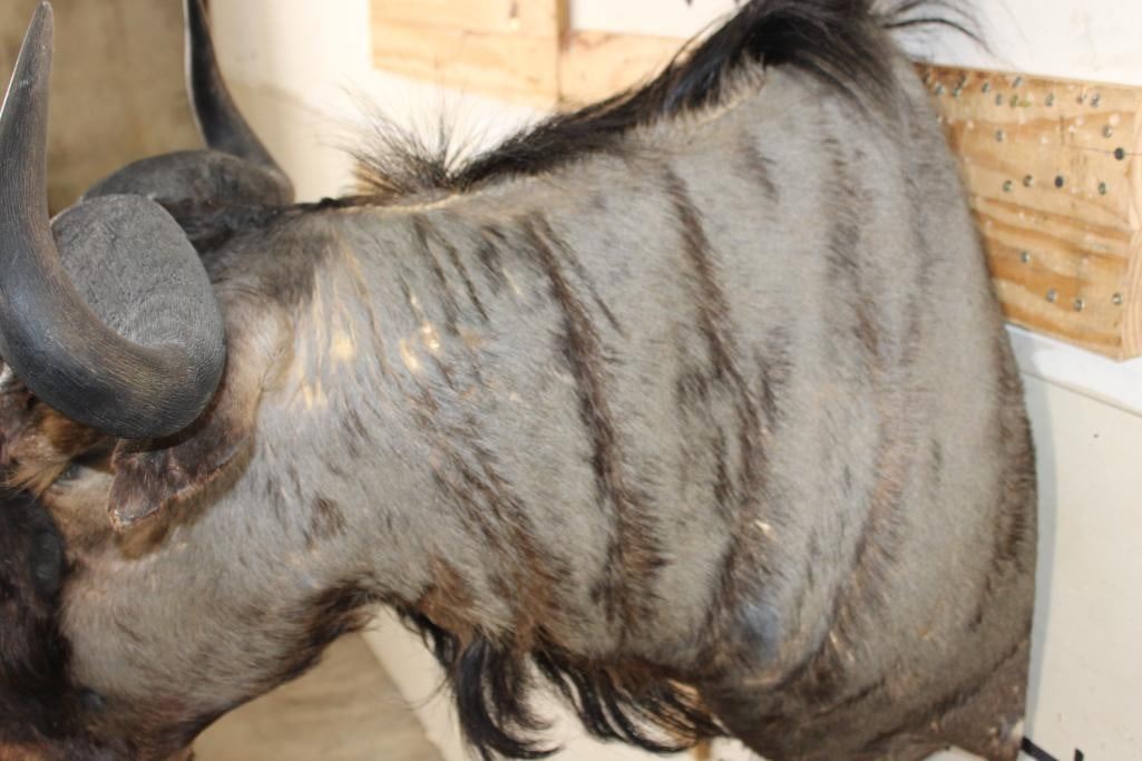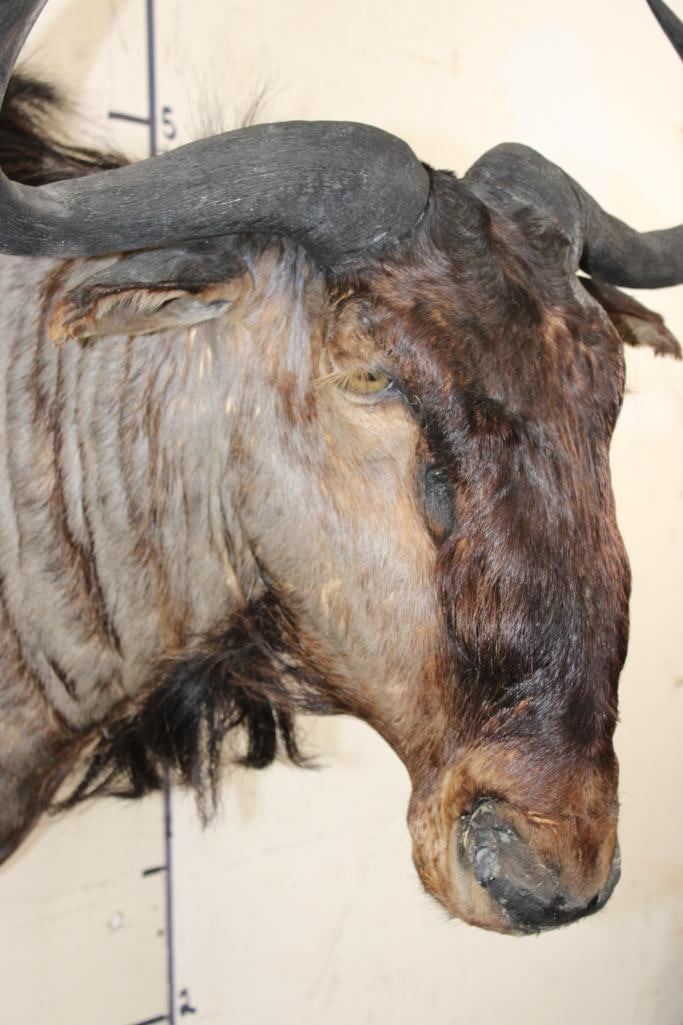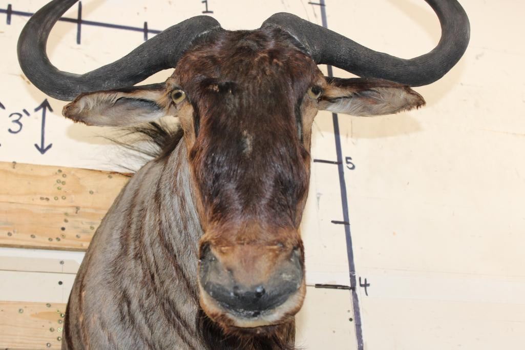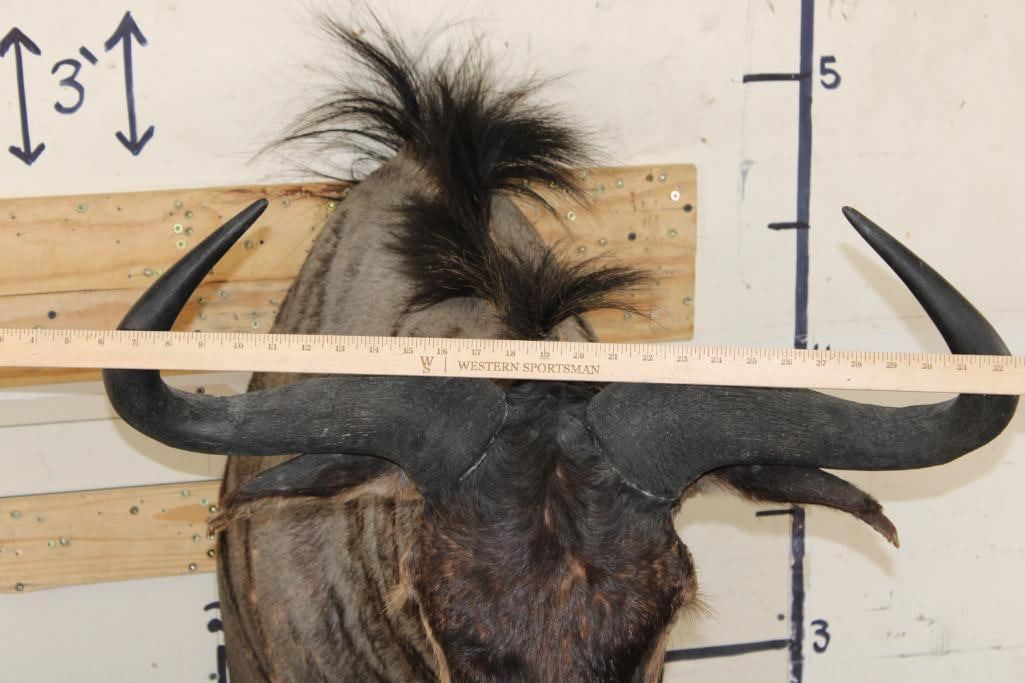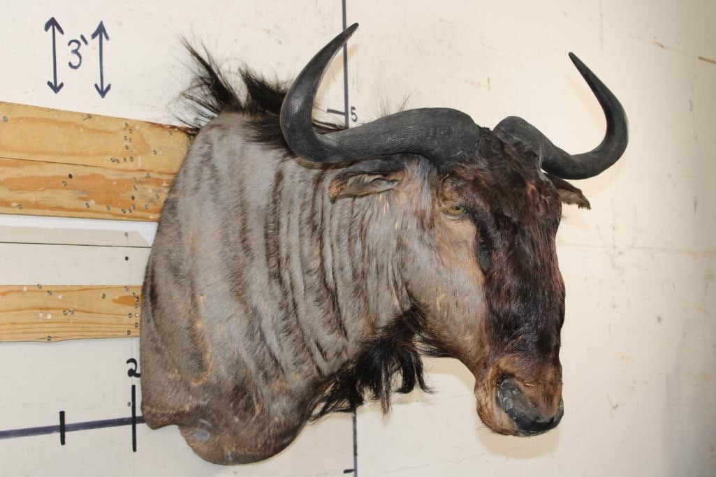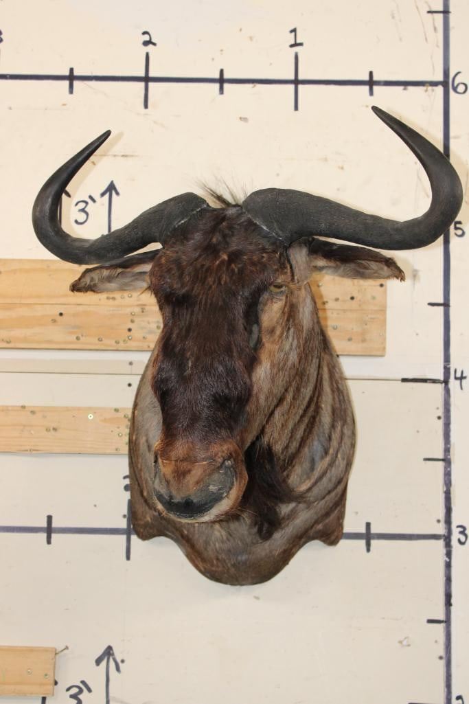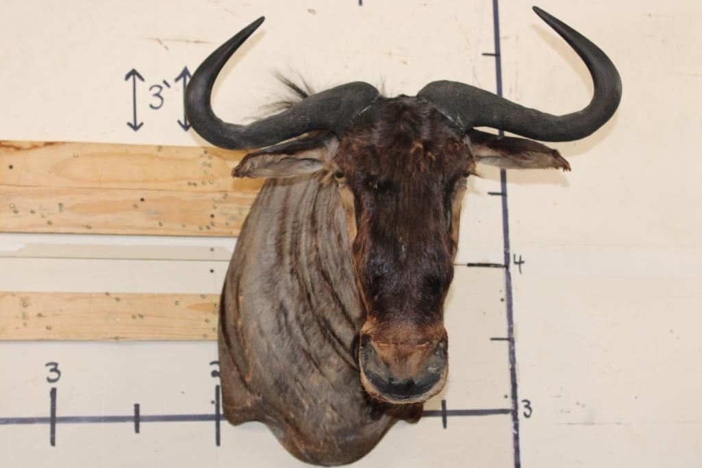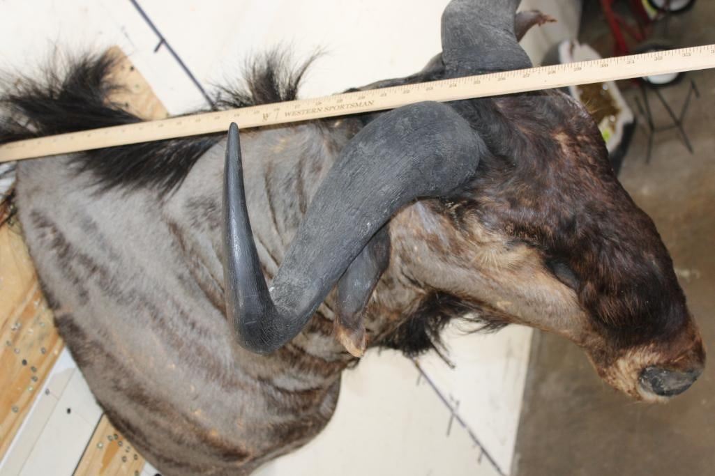 BLUE WILDEBEEST Shoulder Mount with a 27.5" Spread. It is an Older Mount with some blemishes. TAXIDERMY