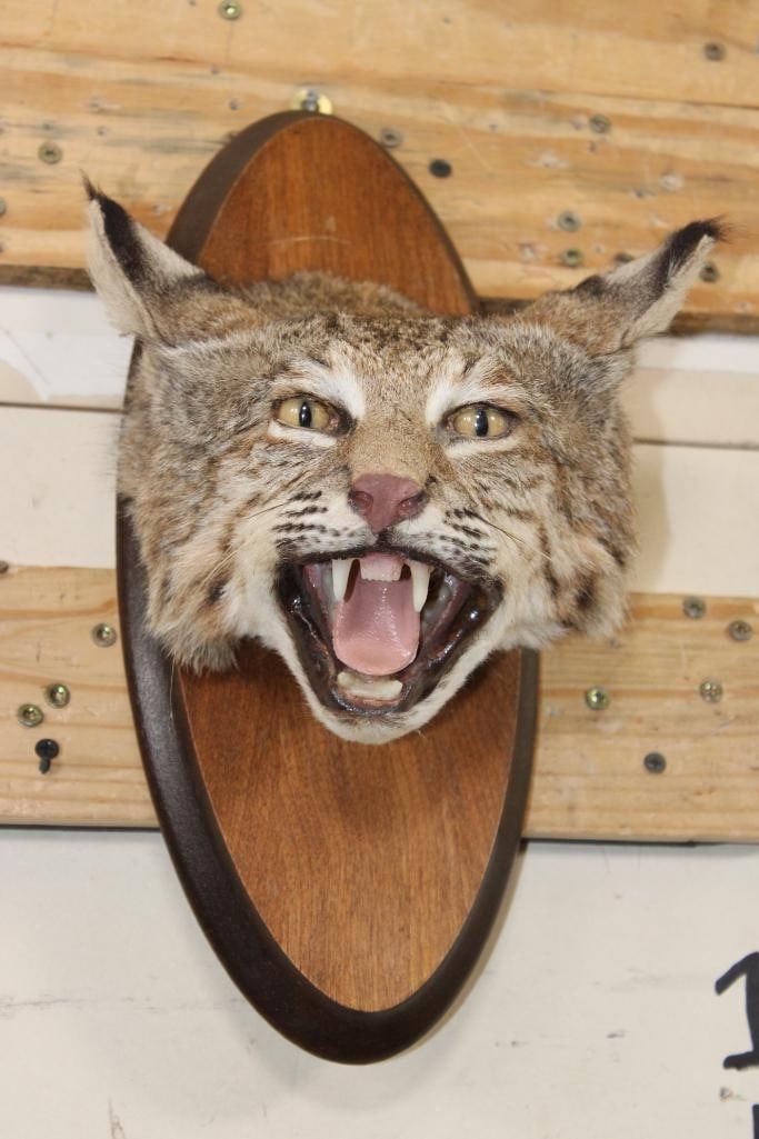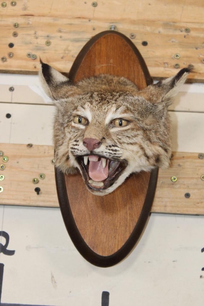 Very Nice BOBCAT Shoulder Mount or Head Mount. It is on a Wooden Plaque that measures 14" Tall x 6" Wide. It is in Good Condition. TAXIDERMY