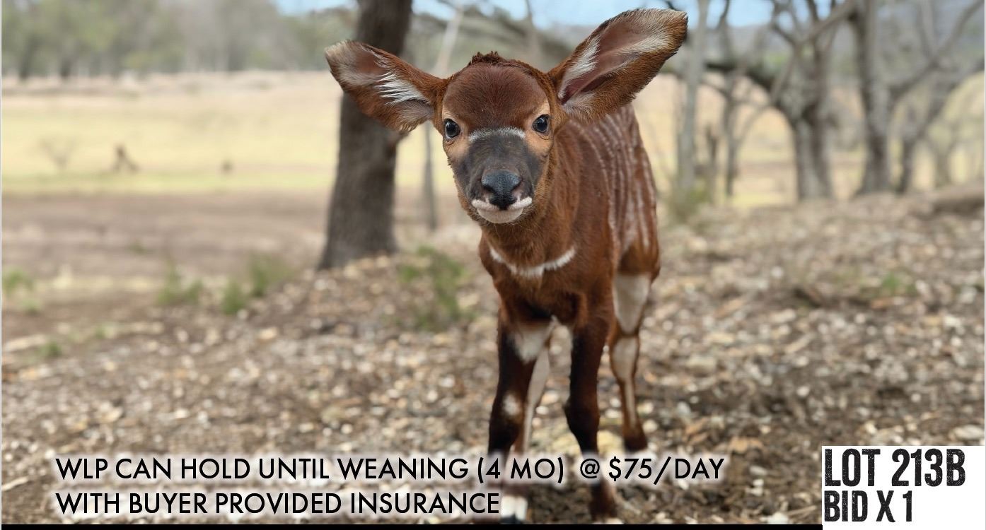 WildLife Partners agrees to maintain, in good condition, the animals purchased in this auction until full settlement is made and the animals purchased in this auction have been transferred to buyer. Delivery and/or pickup of the animals and any associated costs are solely between the buyer and WildLife Partners. Delivery is $4.00/loaded mile or buyer may pickup on location.