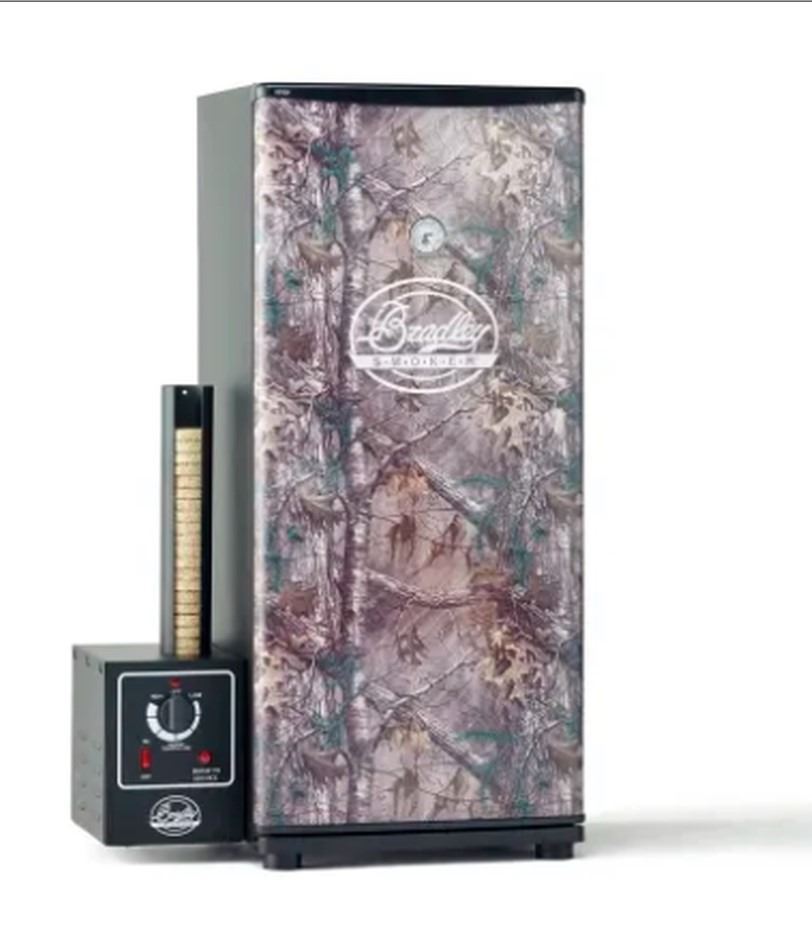 Bradley Smoker now offers a 6-rack smoker in Realtree Xtra camo. Ideal for outdoorsmen and women, the Bradley Smoker is perfect for a backyard, cabin or hunt camp. Fully automatic smoke means you don't have to constantly refill the smoker with chips. The stainless-steel interior and magnetic door ensure easy clean-up and keep the smoke contained. The fully insulated cabinet and door keeps the heat in and prevents heat damage to surrounding surfaces. The versatile cooking design allows you to cook with or without smoke or smoke with or without heat. Simply turn it on, load it with wood and set the temperature. It's that easy! The smoker's easy-to-use jerky racks and sausage hooks makes it the perfect way to end any hunting trip.