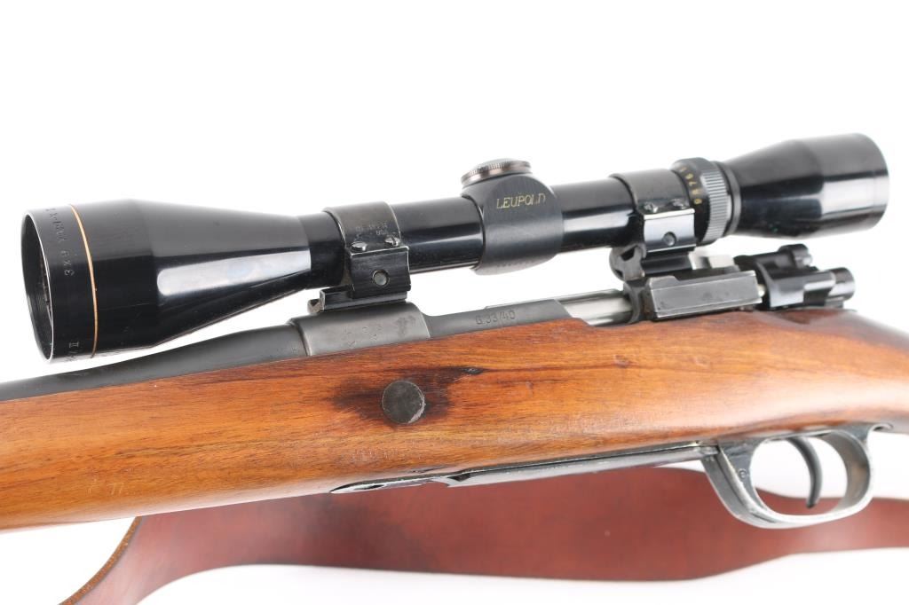 This a G.33/40 mountain/paratrooper carbine that has been sporterized and rechambered in 30-06. The Gewehr 33/40 was made exclusively by the former Czech Zbrojovka factory by Brno, which was operated as Waffenfabrik Brunn AG, code letter dot . Rebarreled with a tapered .30-03 barrel, no provisions for sights, original stock has been cut-down, refinished and rubber recoil pad installed, cleaning rod channel plugged with wood filler. Polished bolt with swept back handle, brown leather sling attached. Mounted with a Leupold 3X9 Vari-X II scope with duplex reticle, Weaver rings, clear optics. Bore is excellent/bright, action is smooth, wood is very good/sound and the refinish is about 98% with minor scratches.NRA Condition-Excellent/Sporterized. C&R Rifle.
