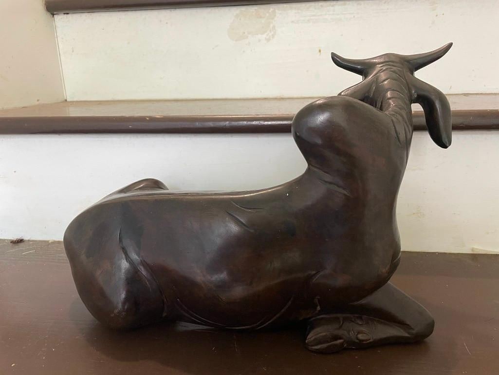 Unique Western Brahman or Zebu COW BRONZE. It measures 15" Long x 10.5" Wide and has a Total Weight of 17 lbs. COLLECTIBLE BRONZE SCULPTURES