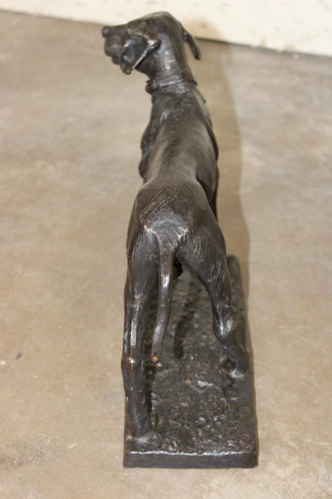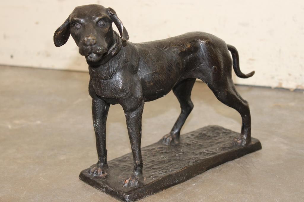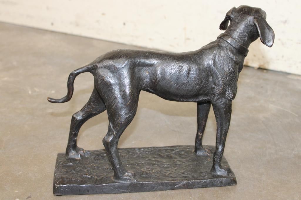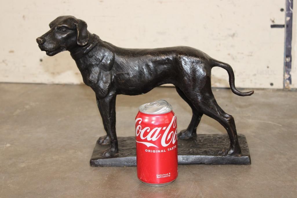 BRONZE DOG Sculpture. It measures 10.25" Tall x 4.5" Wide x 13.75" Depth and the Total Weight is 7lbs 1oz. COLLECTIBLE ART BRONZE SCULPTURES