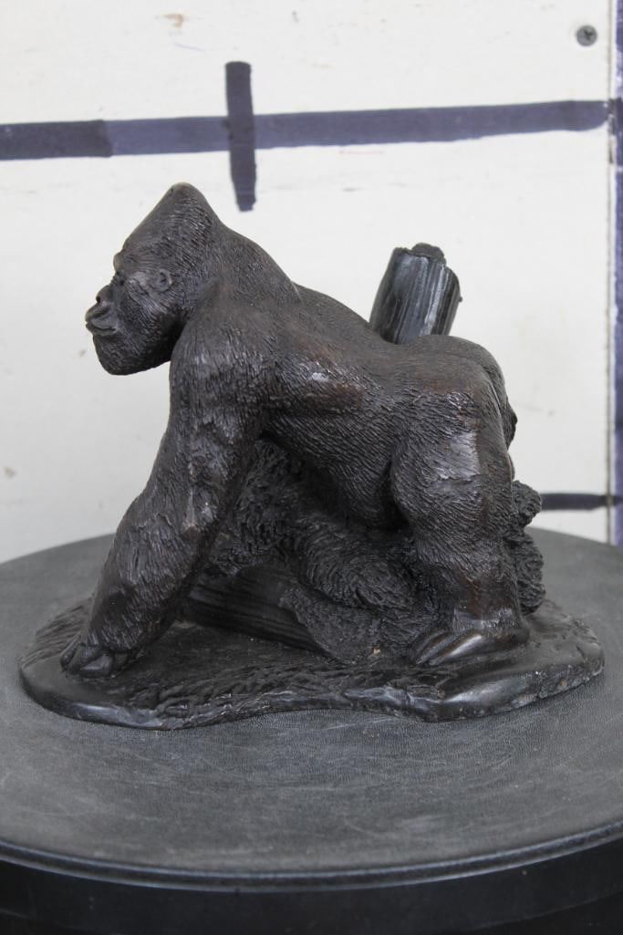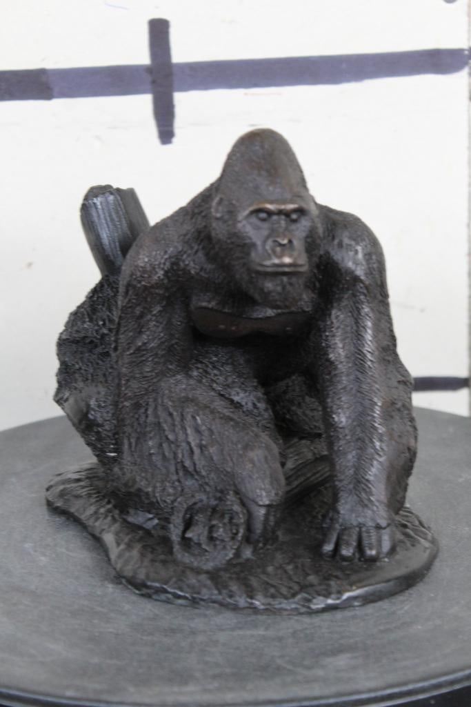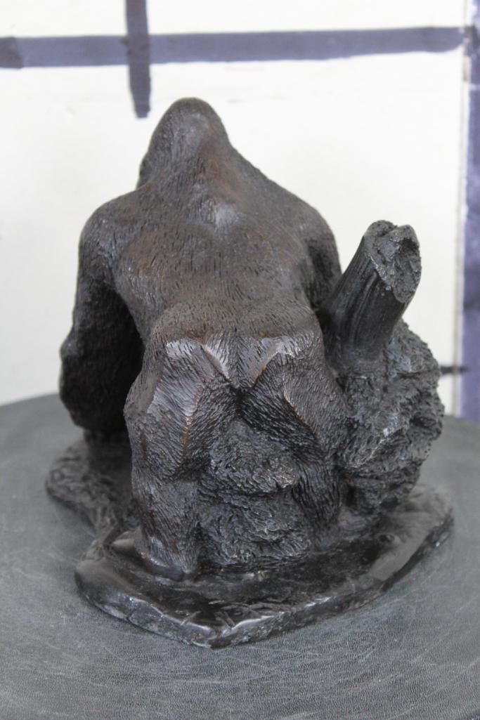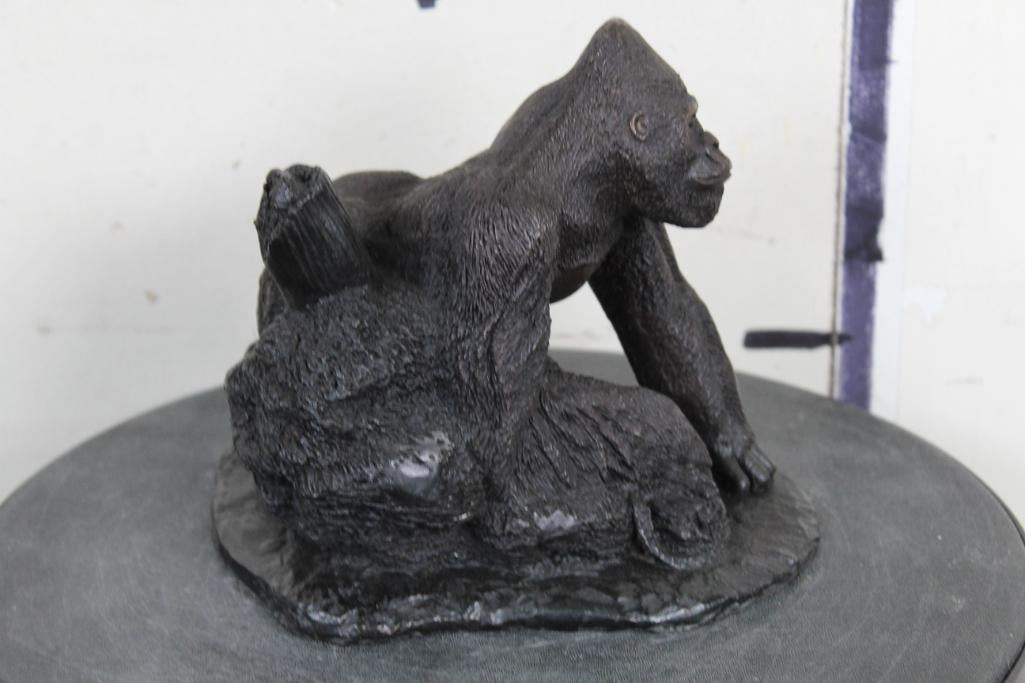 BRONZE GORILLA Sculpture. It is realistic and detailed and measures 6.5" Tall x 6.5" Wide x 7.5" Long. the Total Weight is 4 lbs 4 oz. COLLECTIBLE ART BRONZE SCULPTURES