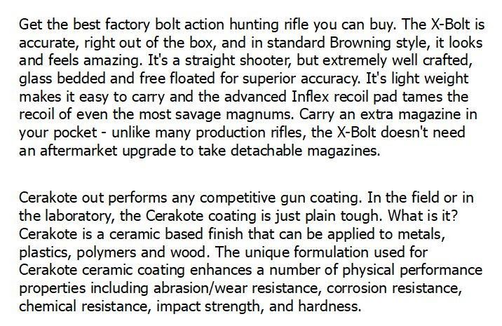 NEW IN BOX. The X-Bolt is accurate, right out of the box. Looks and feels amazing. Cerakote out performs any competitive gun coating. Buckhorn camo composite stock. 26in barrel, 3 shot capacity magazine