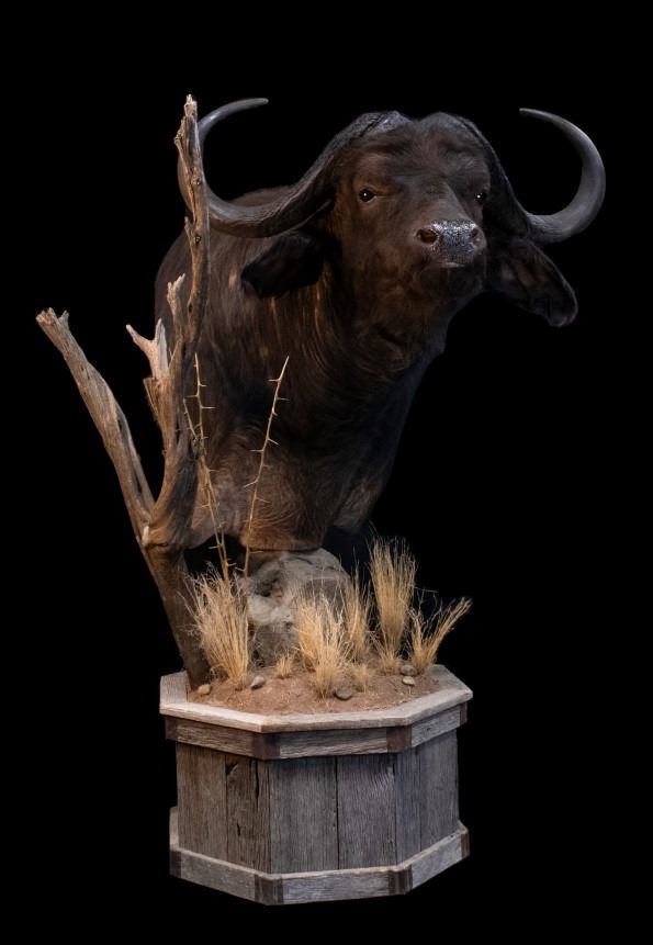 Taxidermy services for a custom Cape buffalo pedestal mount that includes mounting services and a floor pedestal base. Brush Country Studios has been producing taxidermy for 33 years. Along with offering European and shoulder mounts, Brush Country Studios specializes in custom life-size mounts accompanied by beautiful habitat displays. No project is too big or too small. Whether you would like a shoulder whitetail mount, or your entire New Zealand collection displayed on one base, BCS will produce a beautiful product. DALLAS SAFARI CLUB THANKS BRUSH COUNTRY STUDIOS FOR THIS 100% DONATION. Jim Peterson or Chris Cammack, 281-256-0742, 605-484-7579, jim@brushcountrystudios.com, www.BrushCountryStudios.Com, BOOTH #1311.