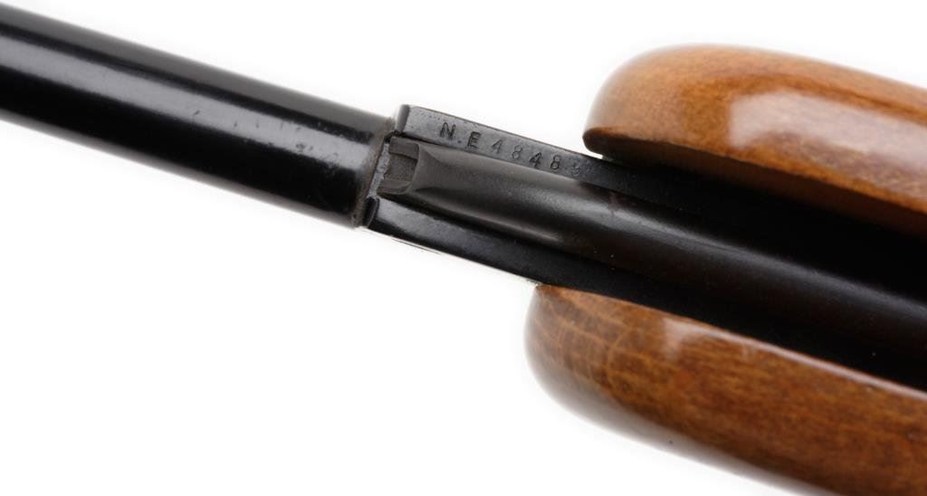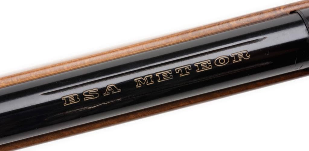BSA Meteor air rifle, .177 caliber, 18.5” round barrel, S/N NE 48489, black finish, wood half stock with hard rubber butt pad. This air gun is in overall very good to fine condition showing little use. Est.: $75-$150.