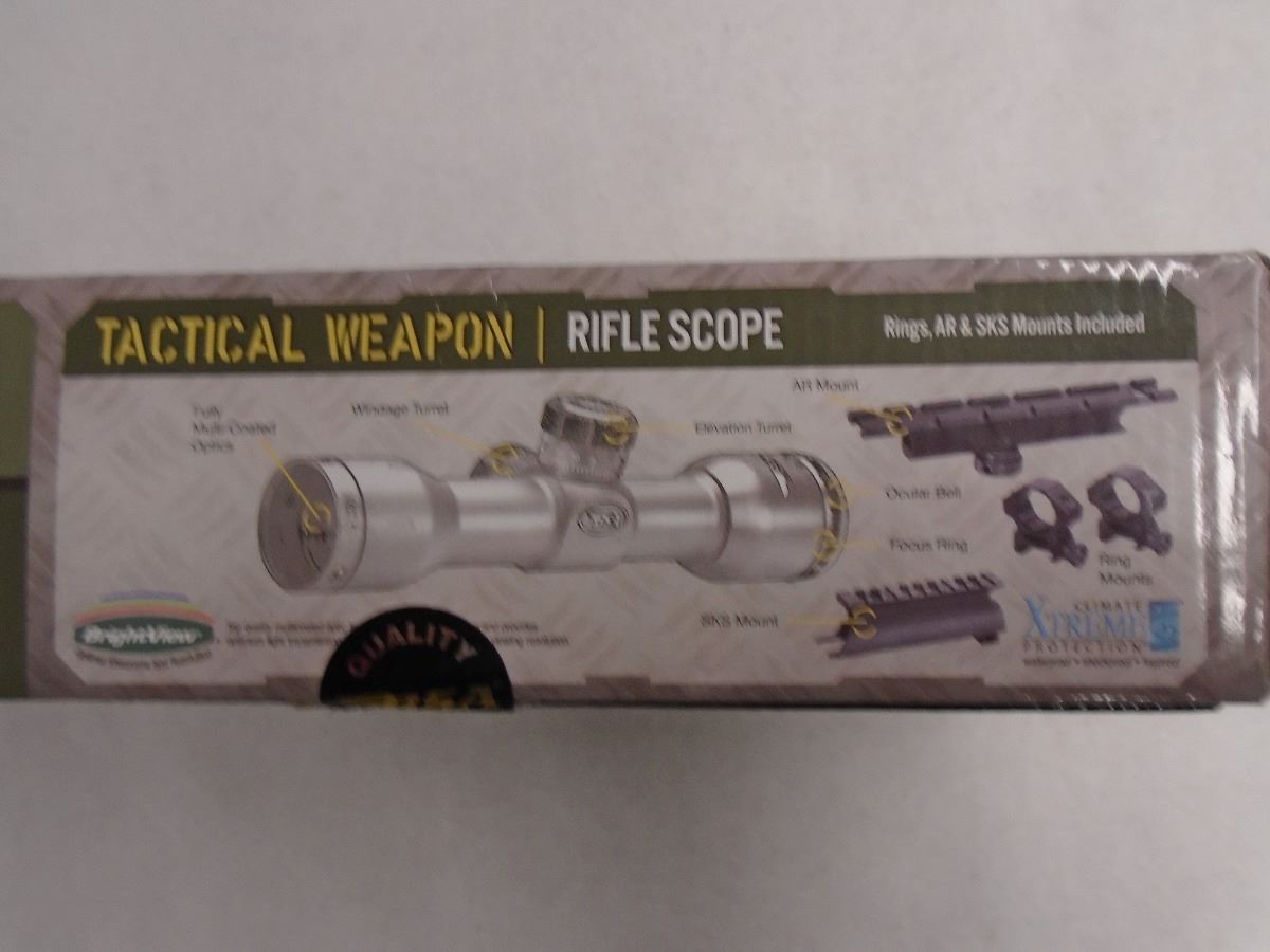 As is – 4x30 scope, coated lens, 4” eye relief, AR/SKS mounts included Open box