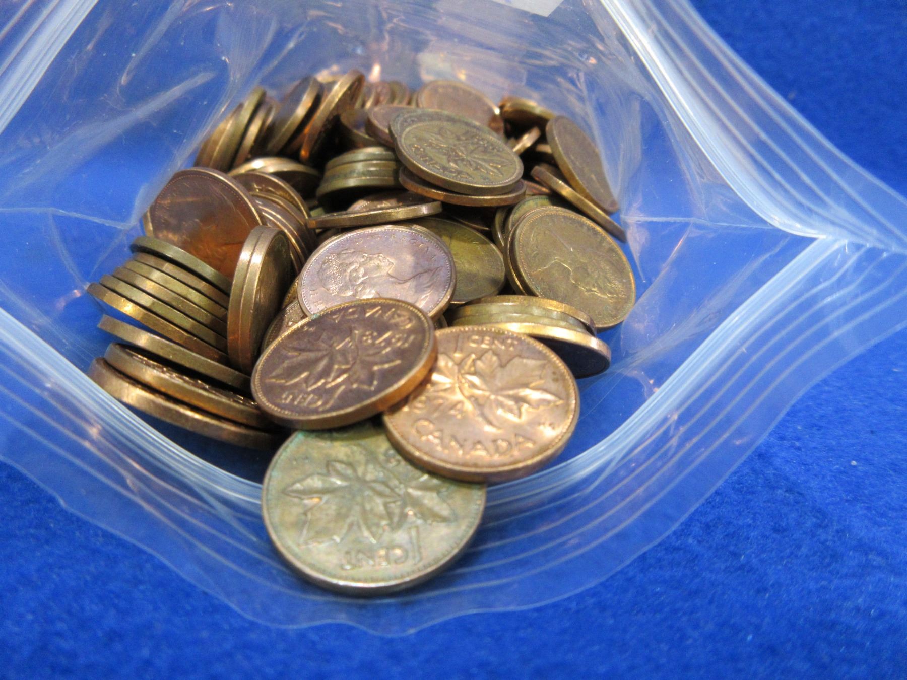 Bag of Canadian Pennies - 1020 Grams Total Weight