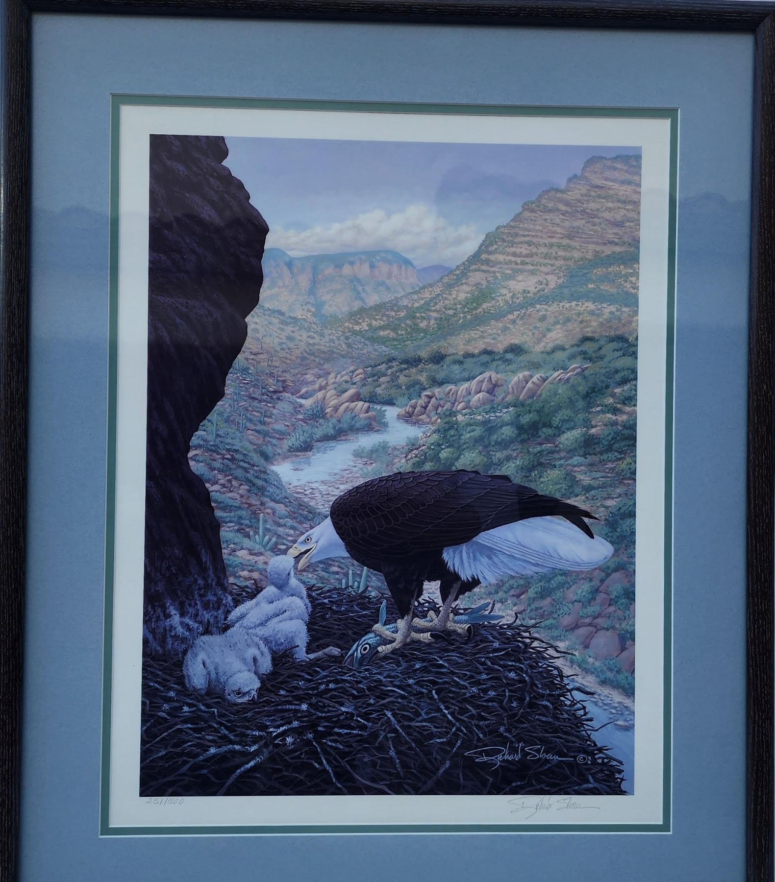 Bald Eagle w/ Chicks (as in birds) 21" X 25" framed print 251/500 by Richard Sloan