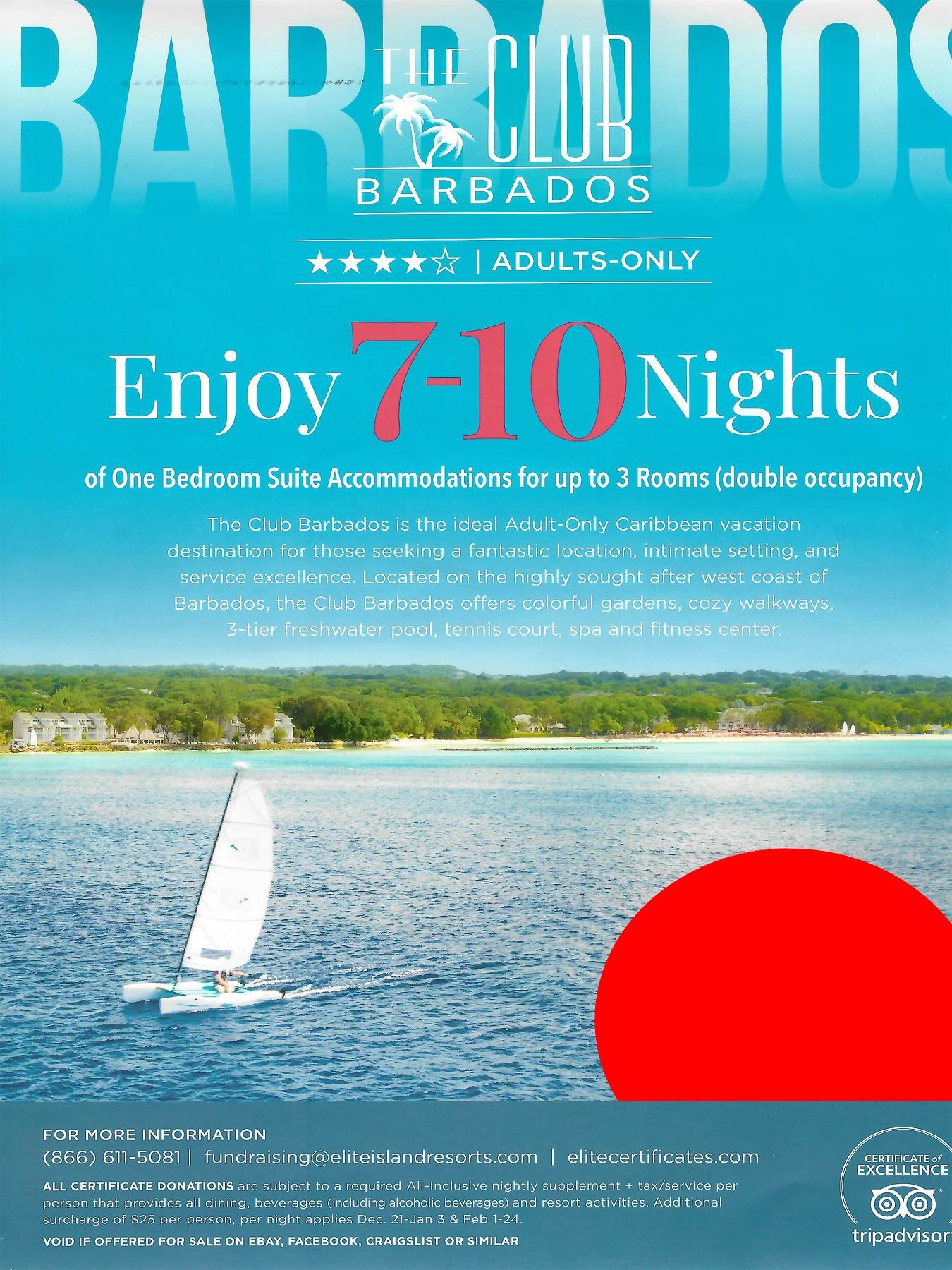 Enjoy 7-10 nights of one bedroom suite accommodations for up to 3 rooms (double occupancy). The Club Barbados is the ideal ADULT-ONLY Caribbean vacation destination for those seeking a fantastic location, intimate setting, and service excellence. Located on the highly sought after west coast of Barbados, the Club Barbados offers colorful gardens, cozy walkways, 3-tier freshwater pool, tennis court, spa and fitness center.