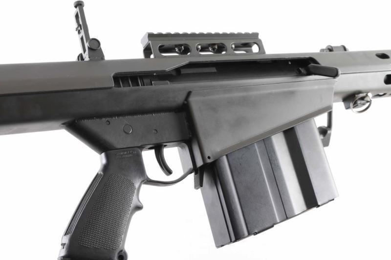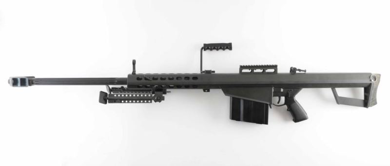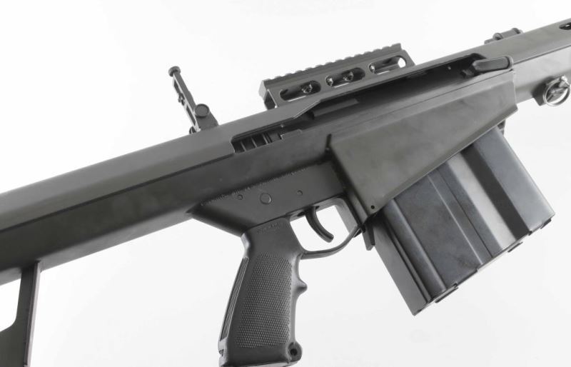 'Light Fifty' Big bore recoil-operated semi-automatic anti-materiel sniper rifle chambered in .50 Browning Machine Gun. Features a matte grey finish, heavy 29" fluted barrel, installed muzzle break, full-length optic rail with integral flip-up post front sight, fully-adjustable folding rear aperture sight, adjustable folding bipod, removable carry handle, detachable 10 round magazine, smooth wide trigger, manual safety, A2 pistol grip & rubber recoil pad. Includes the factory Pelican 1750 hard case with manual. Rifle exhibits light scattered wear with approximately 95% original finish intact. Action is sound and the bore is pristine. Condition is near NRA Excellent in case. *** Modern Firearm ***