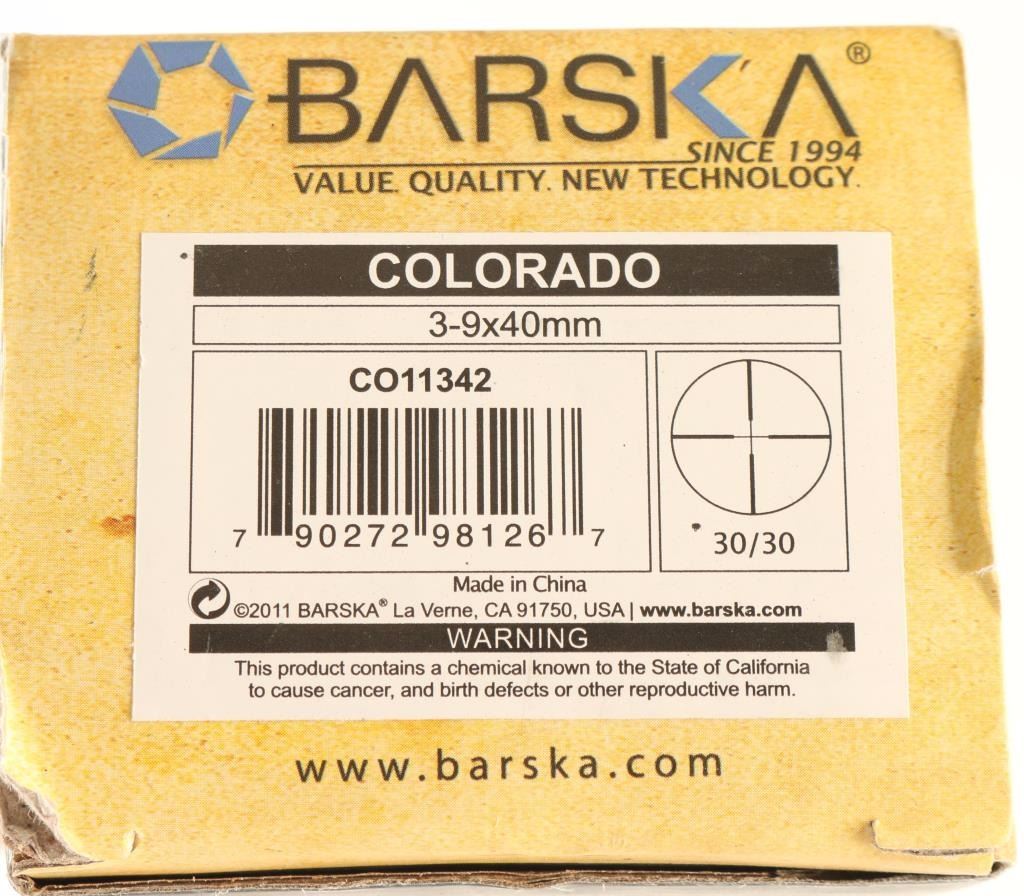 Colorado 3-9x40mm, new in box. Includes scope caps and lens cloth. Matte black.
