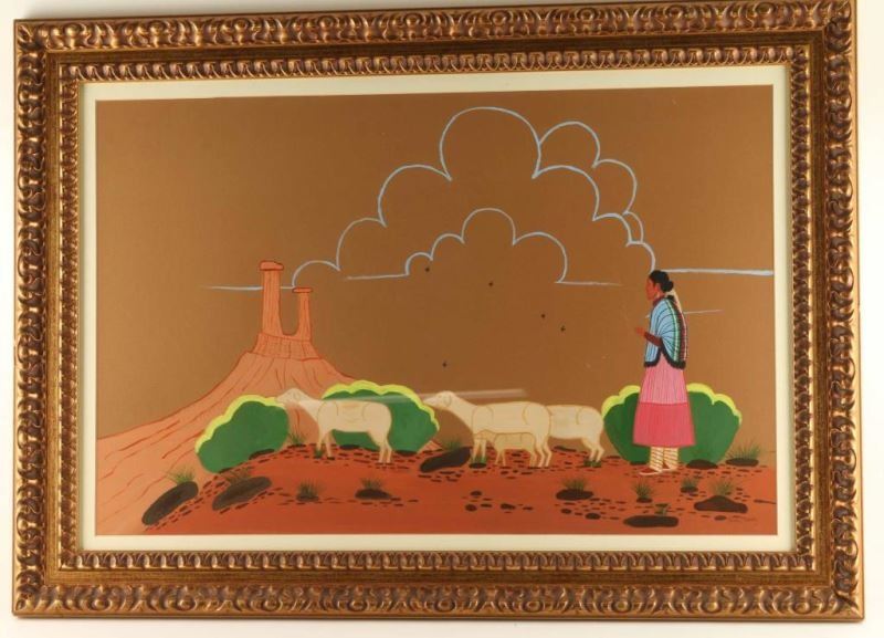 larger sized original painting by Beatin Yazz (also known as Little No Shirt, signed as Jimmy Toddy), 27" x 39" framed