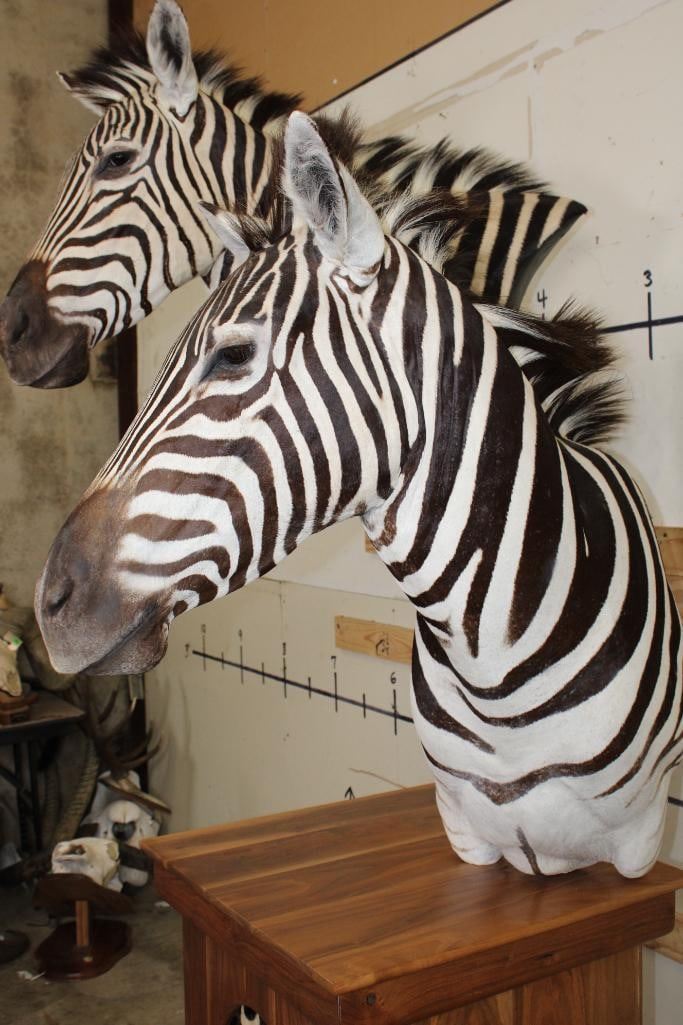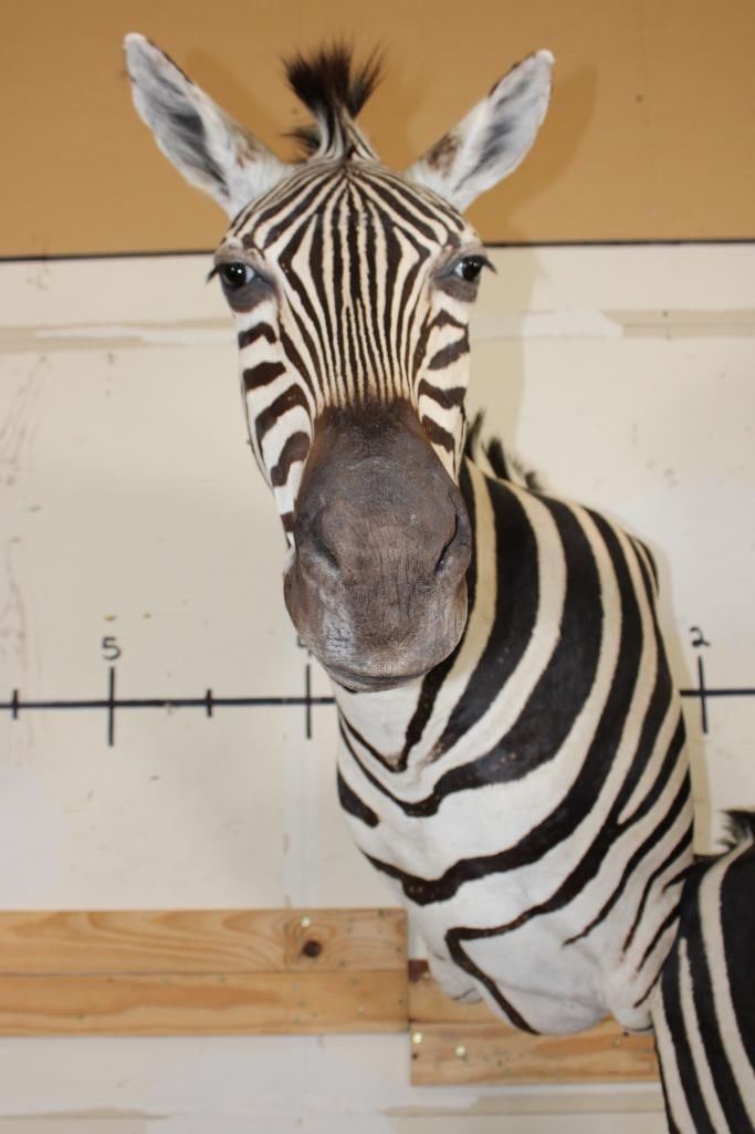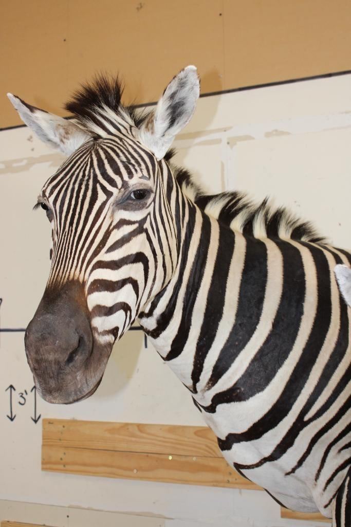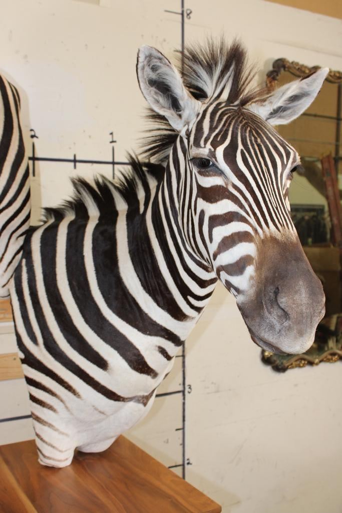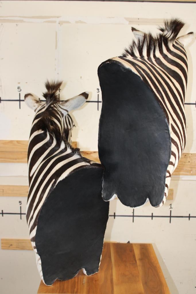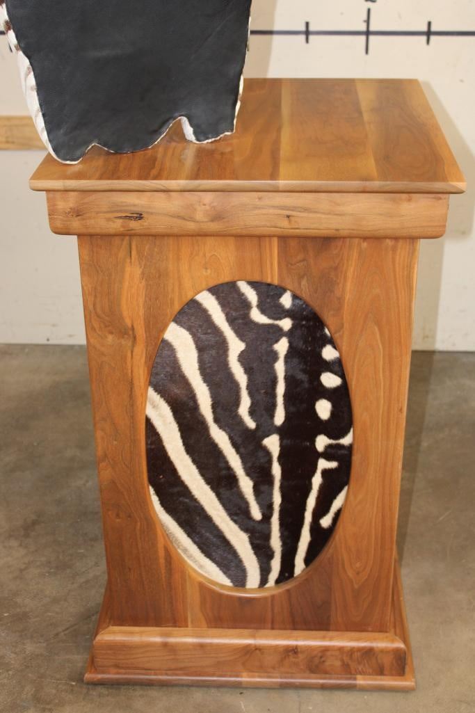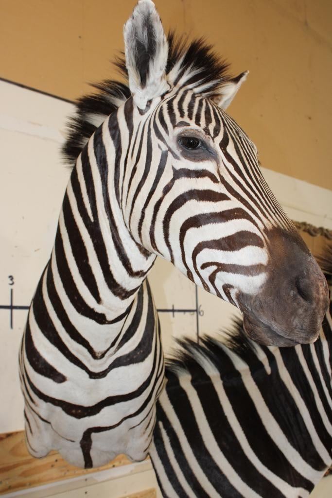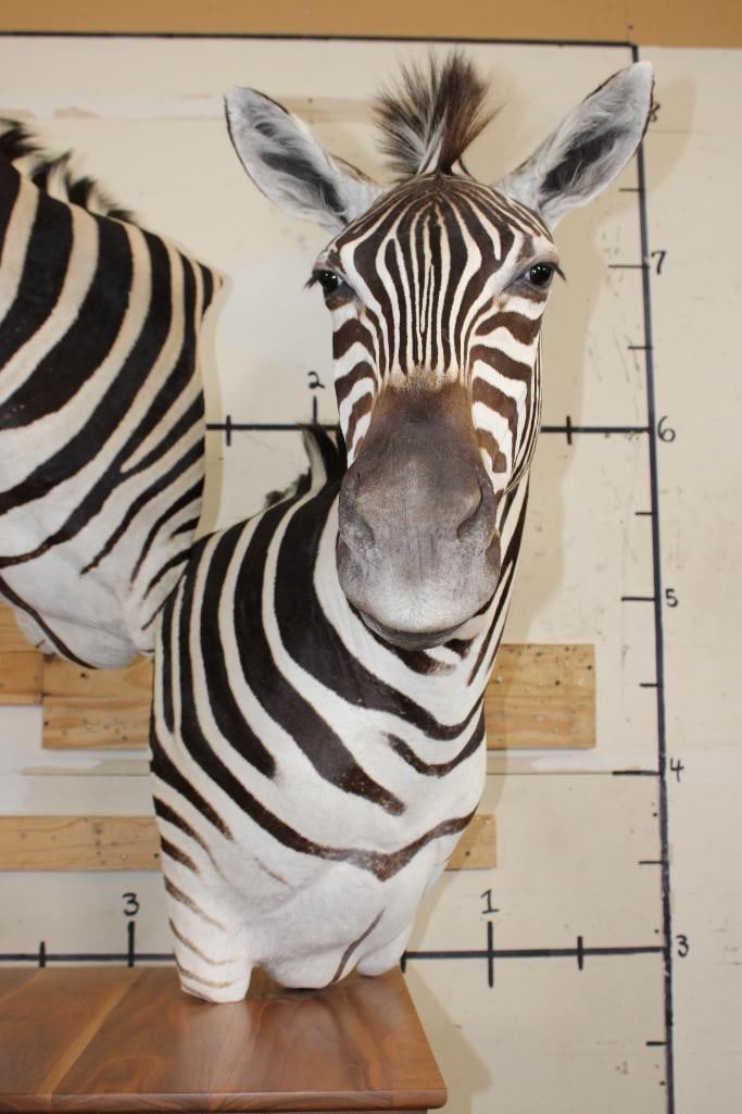 Very Nice, Clean, and Newer Double ZEBRA Pedestal Mount. It looks Brand New! The Pedestal has 4 Panels of Zebra Hide and is made of Wood. The Pedestal measures 24" Long x 24" Wide x 38" Tall. The Zebras are Removable. The Total Mount Height is 7' 6" Tall. This mount is in Very Good Condition. TAXIDERMY *This item was sold in our last auction. The buyer did not pay, it is being resold*.
