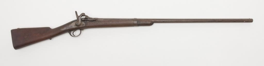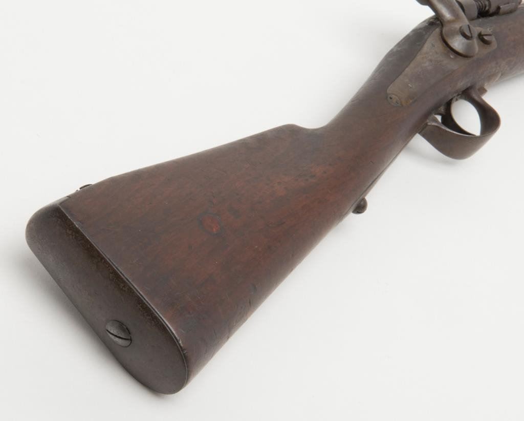 Belgian African Trade “Zulu” shotgun, 12 gauge, 34” barrel, back action lock, single shot, wood stock, #NVSN in overall fair to good condition showing a dark patina to metal surfaces, good action, dark bore, no markings, good wood with some scattered old mars and scratches from carry and storage; missing cleaning rod; type of gun made up by Bannerman of New York in the old days for around $1.75 each. (Antique). Est.: $100-$200.
