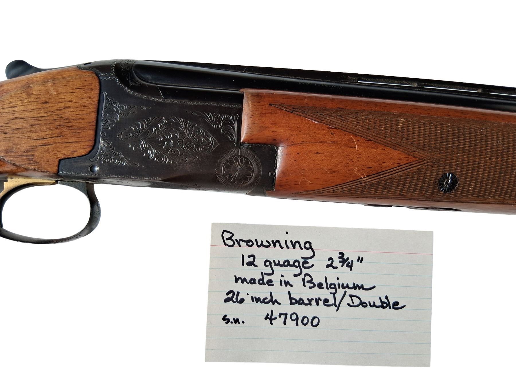 Based on the details provided, your firearm is a Browning Superposed, manufactured by Fabrique Nationale (FN) in Belgium. Using official Browning records for the serial number 47900, this specific 12-gauge shotgun was manufactured in 1955.