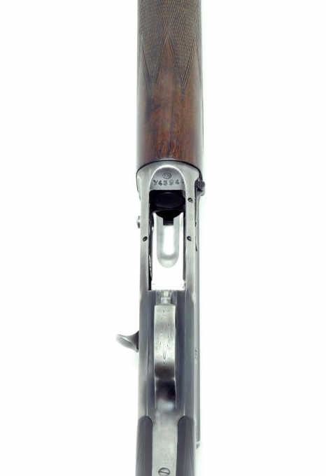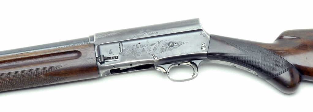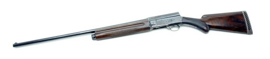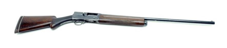 Belgium Browning Sweet Sixteen Semi-Automatic Shotgun, 16 GA, 27 ½” Barrel, blue finish, checkered pistol grip wood stock and fore end, Pachmayr rubber butt pad, S/N X43944. This shotgun remains in good overall condition showingapproximately 80% blue remaining and just starting to go brown. The top of the barrel shows machine checkering for anti-glare. The stock remains in good condition with dings and mars along with a crack and loss of wood to the left of the foreend. The action is crisp and the bore is in very good condition. (C&R) Est.: $650-$1300