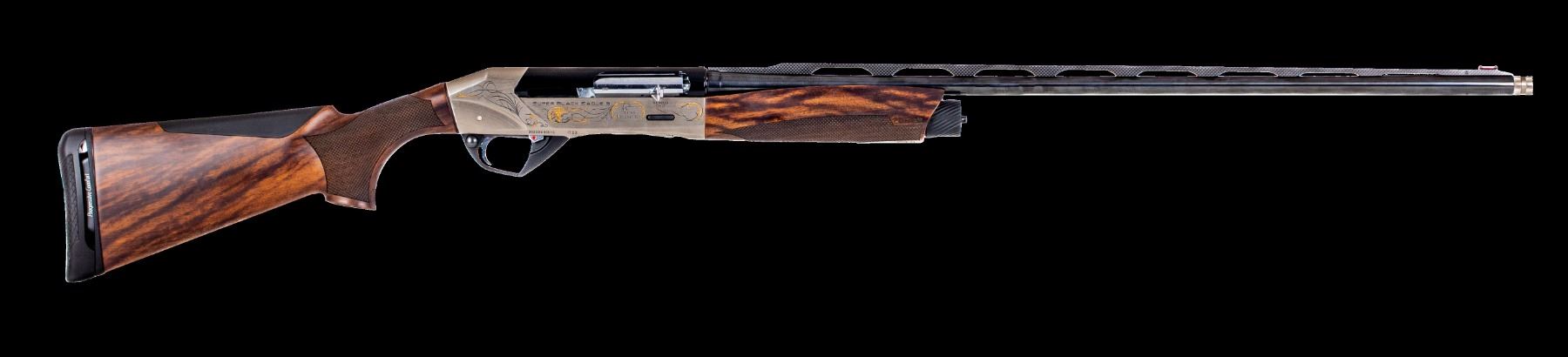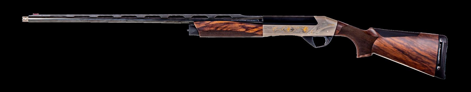 28 gauge semi-automatic shotgun; 3” chamber. 28” highly polished blue barrel with five extended interchangeable choke tubes. Coin finished receiver. DU exclusive oil-finished walnut stock. Gold inlaid waterfowl scene engraving featuring the DU logo. Engraving pattern compliments DU’s 12 gauge Benelli SBE3 from 2019 and 20 gauge Benelli SBE3 from 2022. Special DU serial number. Gun lock included