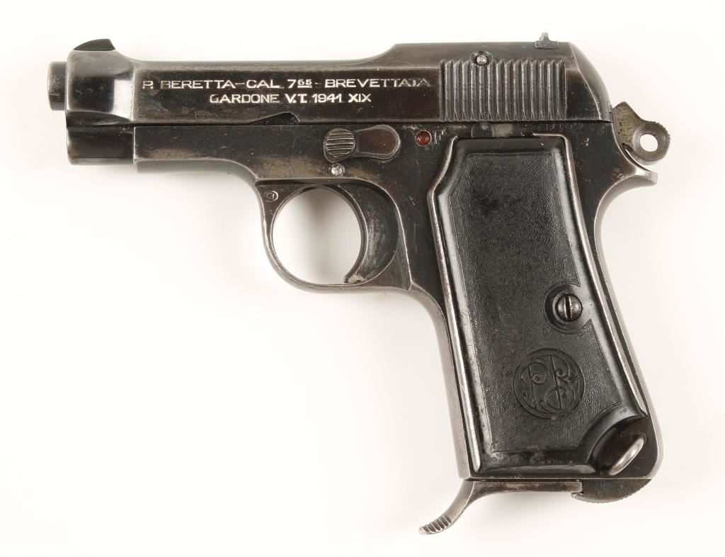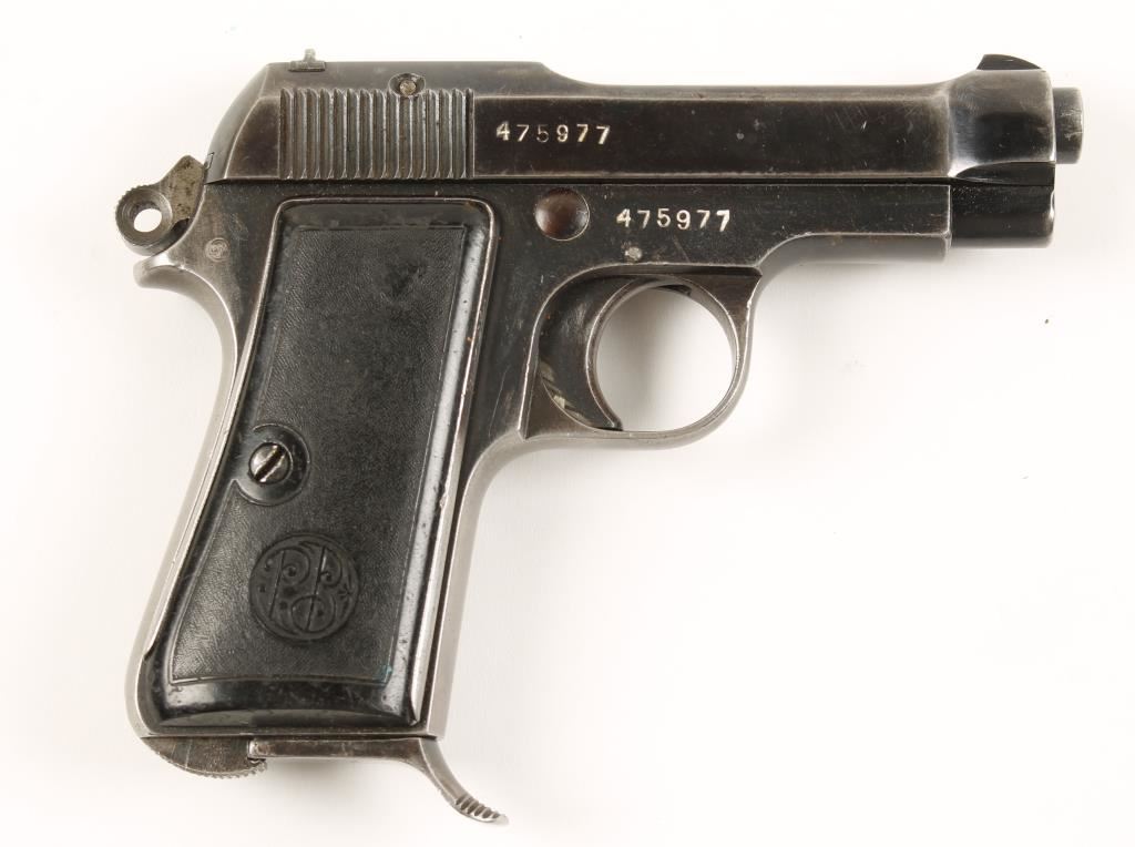 Blued Italian made single-action semi-automatic pistol with a 3-1/2" barrel and one magazine. Finish has wear to grey on exposed areas There are no dings or scratches to speak of. The stippled plastic grips show some wear and the screw heads are buggered. The magazine has a finger rest. Action is good. The bore is dirty and dark with some sharp rifling. It may clean to better. Condition is fair to good. *Modern Firearm*