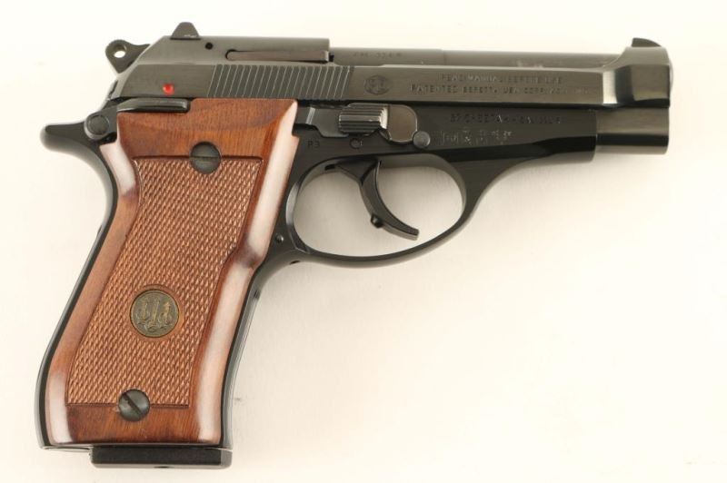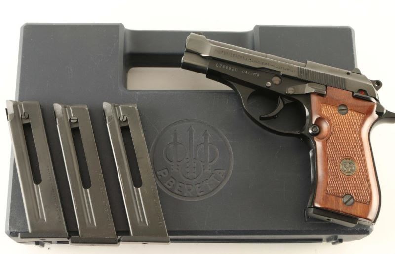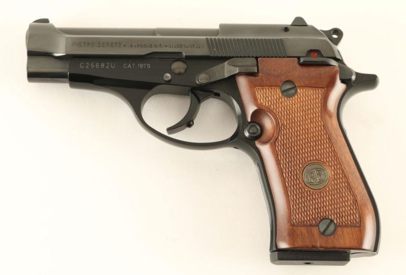 Italian made double action semi-automatic compact pistol chambered in .22 Long Rifle, circa 1996. Features a blued slide, 3.8" barrel, fixed three-dot sights, serrated trigger, serrated round hammer spur, ambidextrous thumb safety, magazine disconnect safety, push button magazine release, factory 7 round magazine, black finished alloy frame w/ serrated grip straps and two-piece checkered walnut grips with brass Beretta medallions. Includes a factory hard case with three spare magazines. Pistol exhibits approximately 97% of it's original finish showing some slide wear on the barrel. Action is smooth, bore is pristine, and wood grips are fine. Condition is NRA excellent. ***Modern Firearm***