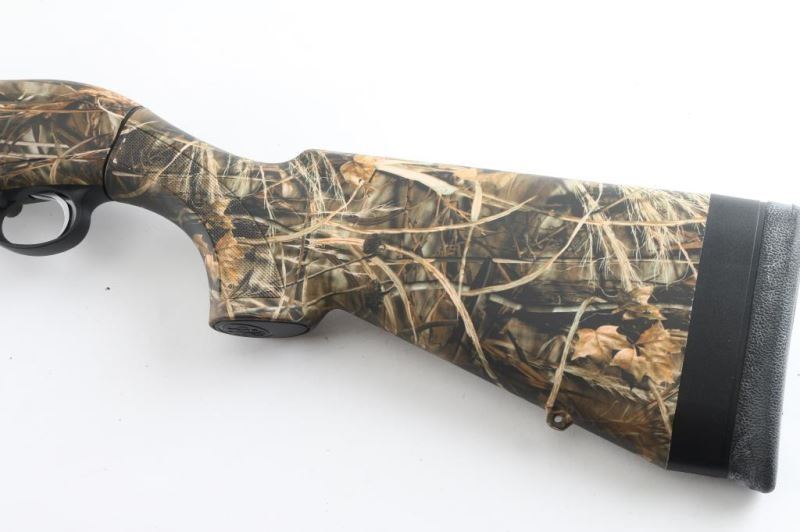 American made semi-auto shotgun. Finished in MAX4 camo. Self-cleaning gas piston. 28" vent rib barrel with brass sighting bead. Mobil choke. 3' chamber. Lightweight, 7.5 Lbs. Half length tube magazine. Push-button safety. Synthetic stock with rubber recoil pad. 14" pull. Modified choke installed. bore appears excellent/bright. Action is crisp/tight. Camo finish is excellent. Comes with original factory box . Almost new condition. NRA Condition-Almost NIB. Modern Firearm.