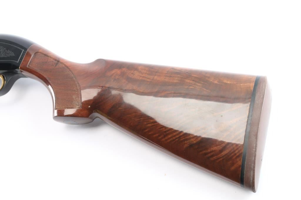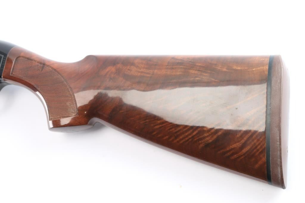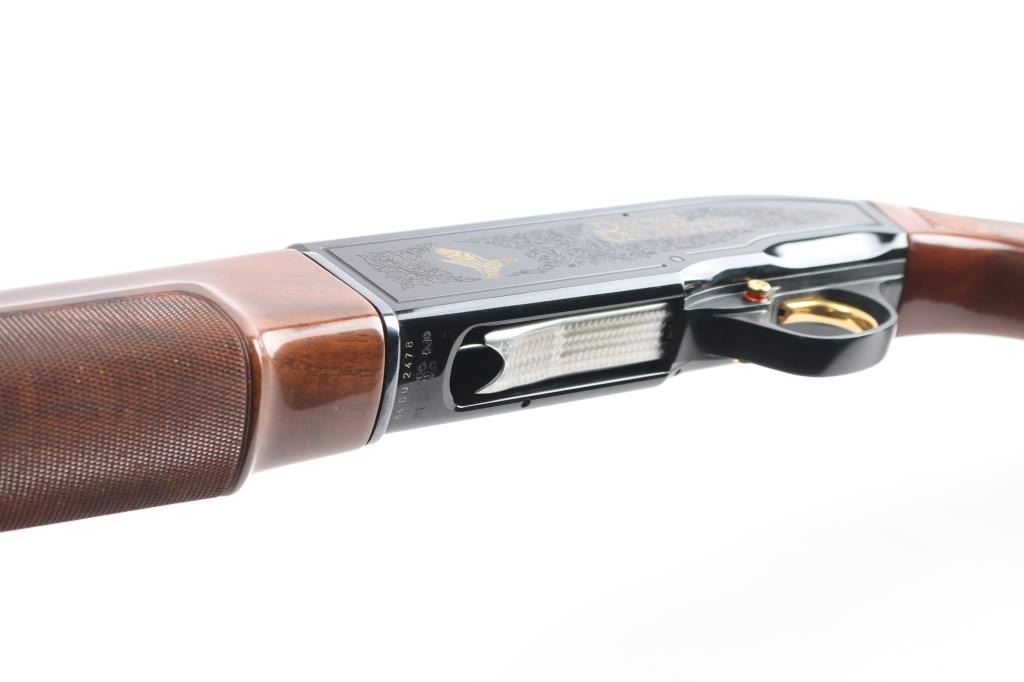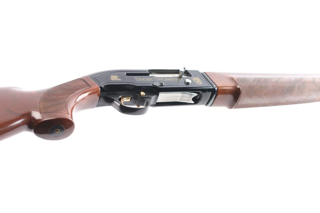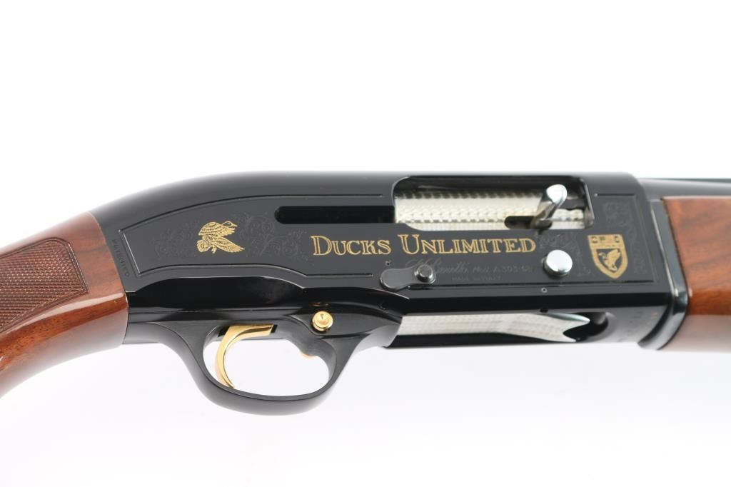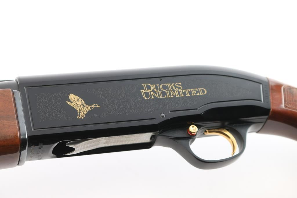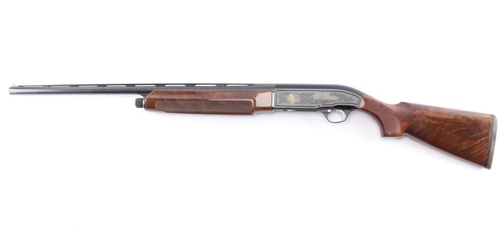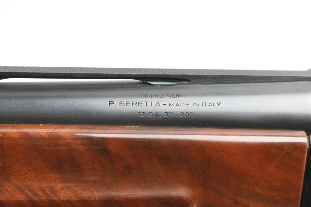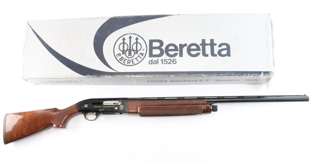 Sn: #86DU2478. Italian semi-automatic 12 gauge shotgun imported by Berben Corp. N.Y, NY. Features blued finish, receiver engraved with 'DUCKS UNLIMITED', shield, fowl, floral scroll and border on right side and no shield on the left. Checkered wood forend, wood buttstock with curved grip & checkered wrist, brown rubber recoil pad, 28' vent rib barrel with a white fiber optic front bead and mid-length steel sighting bead, accepts choke tubes (MOD. tube installed), manual safety. Bore is pristine. Retains 95% blue with very few handling marks. Stock is excellent. Includes original factory box. Condition is Excellent-like new. *** Modern Firearm ***