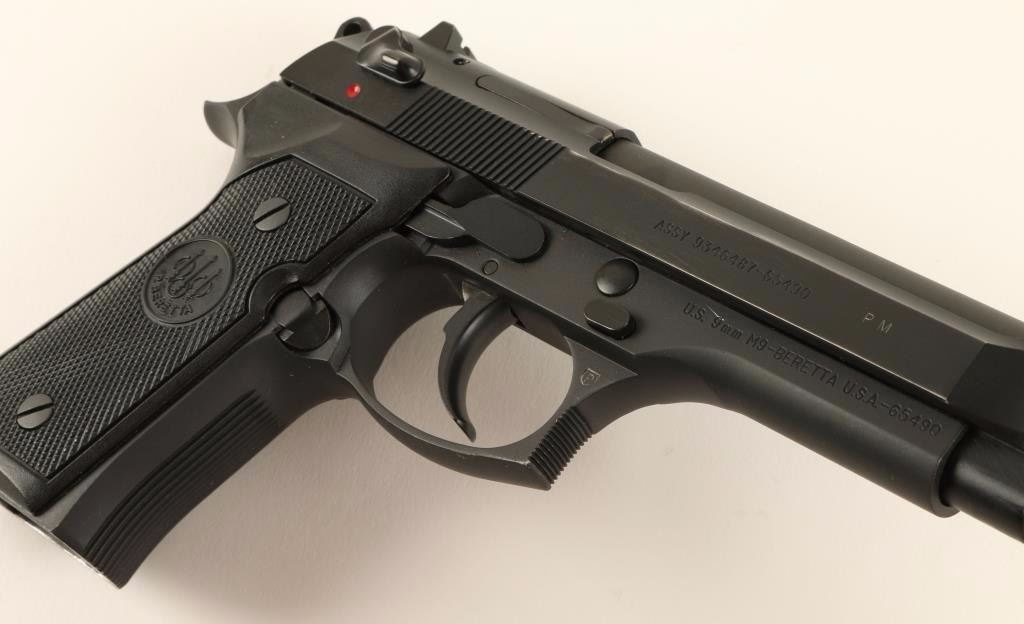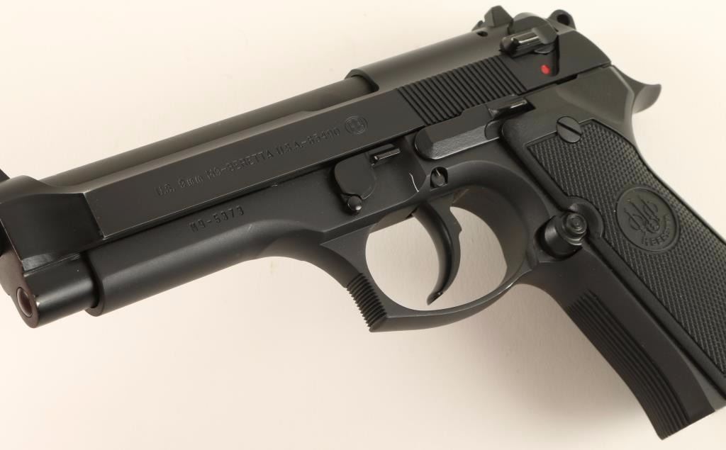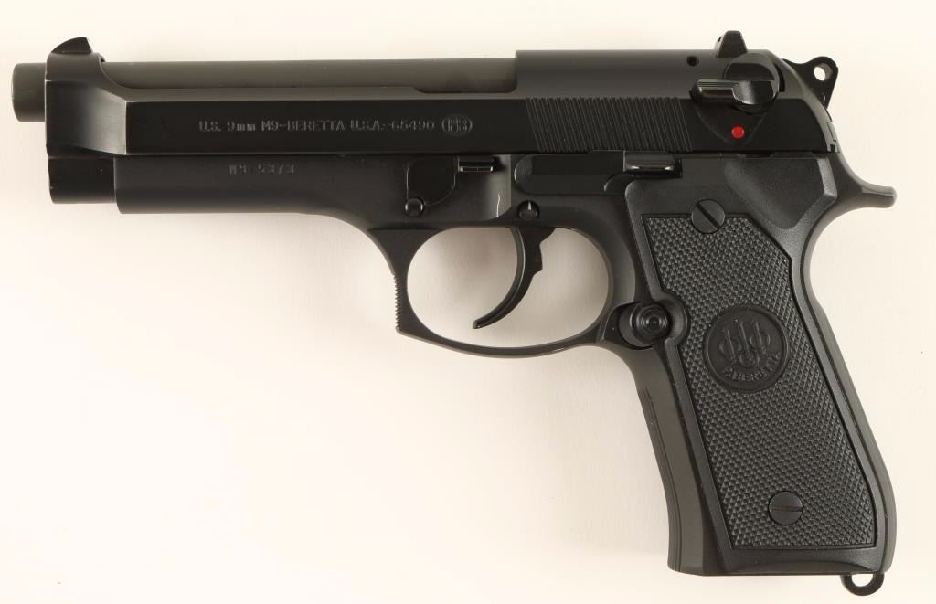 'U.S. Armed Forces Special Edition' Double action semi-automatic pistol chambered in 9x19mm. Features a black coated finish, 5" blued barrel, serrated slide, fixed front sight, adjustable rear sight, lanyard ring, ambidextrous decocker, serrated grip straps, no magazine, and Beretta checkered black plastic grips. Includes original factory box with documents, holster, belt, magazine pouch, and lock. Finish shows light edge wear on slide. Action is tight, bore is dirty but will likely clean , and grips are extra fine. Condition is near excellent in box. ***Modern Firearm***