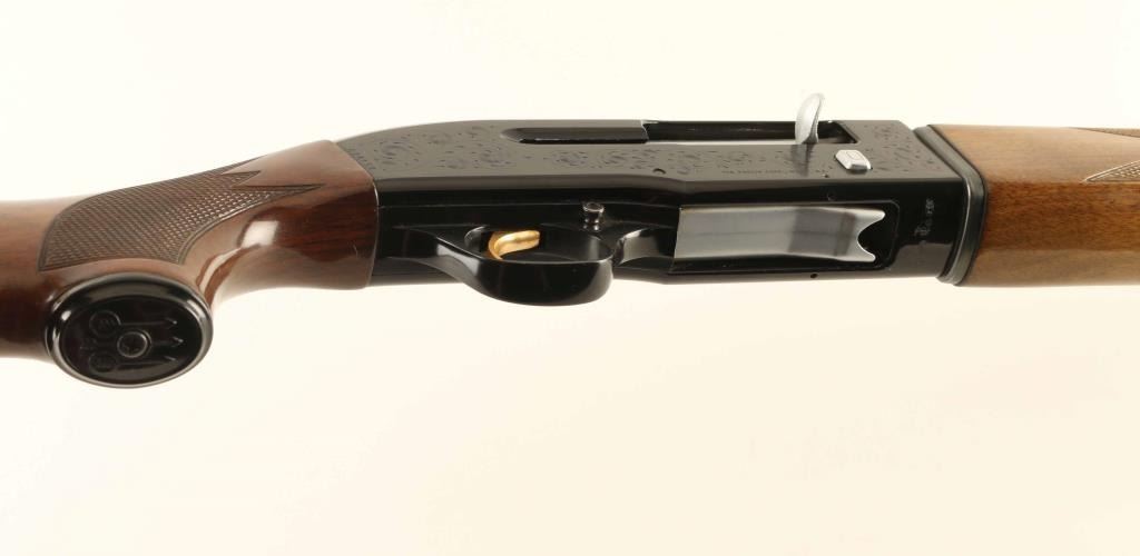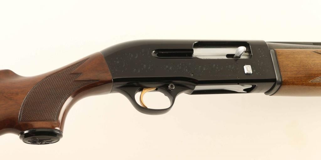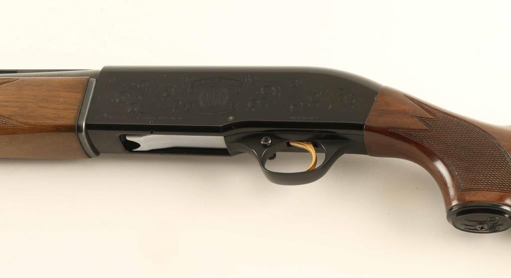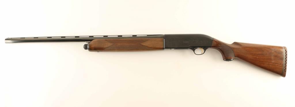 Italian semiautomatic shotgun imported by Beretta USA, Accokeek MD. Features blued finish, engraved receiver, checkered wood forend, wood but with curved grip & checkered wrist, ventilated rubber recoil pad, 28' vent rib barrel, steel front bead, accepts choke tubes (SKEET tube installed), manual safety. Bore is excellent condition. Retains 95% blue with handling marks. Stock is very good condition with scratches and dents to butt. Engraving consists of majority coverage to sides of receiver, displaying a floral scroll pattern with simple elements. Approx stock dimensions: 14-3/8" Length of Pull, 1-1/2" Drop at Comb, 2-1/2" Drop at Heel. Includes extra choke tubes (Full, IC) & tube wrench. Condition is Very Good ++ *** Modern Firearm ***