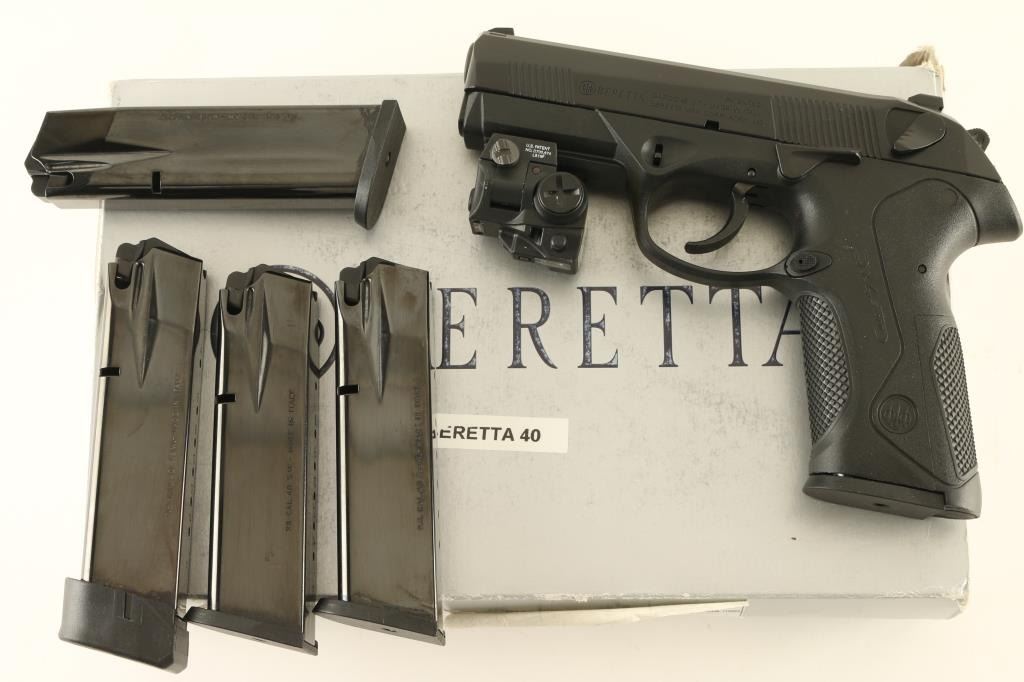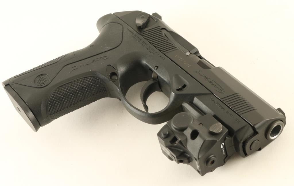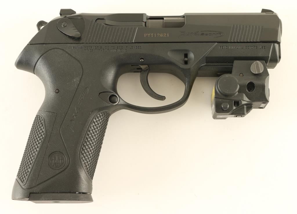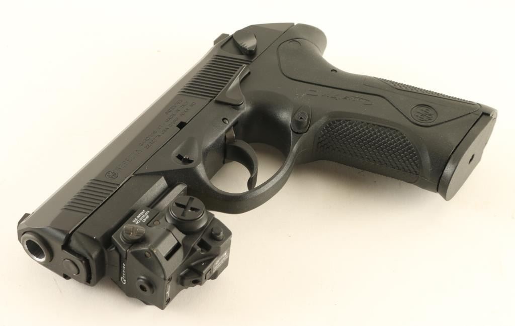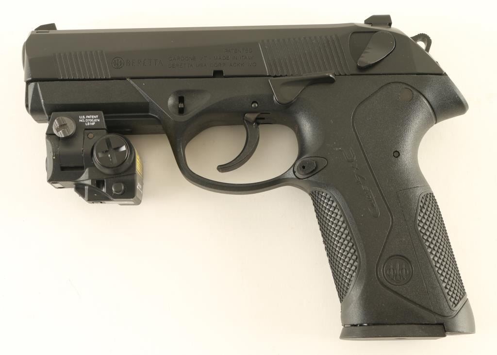 Italian semiautomatic pistol imported by Beretta USA, Accokeek MD. Features matte black finish, black polymer frame, 3.75" chrome lined barrel, 3 dot sights in dovetails, slide mounted decocking safety, double/single action with external hammer, accessory rail at dust cover. Bore is excellent condition. Overall external appearance is like new, with few signs of handling, faint marks on barrel where slide rubs. Includes (5) magazines total, several replaceable backstrap inserts, manual, factory cleaning kit, laser unit on accessory rail (laser appears to work, needs fresh battery). Condition is NRA Excellent - like new *** Modern Firearm ***