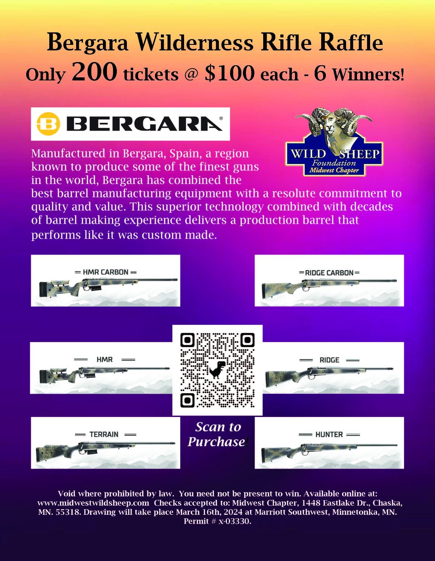 Proceeds benefit the Midwest Chapter of WSF mission of "Putting and Keeping Wild Sheep on the Mountain".